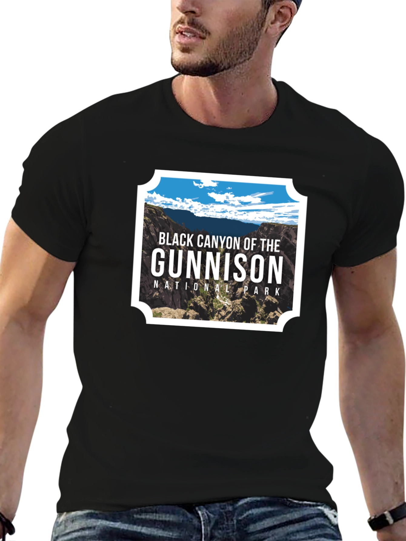 Show your love for the great outdoors with this stylish Black Canyon of the Gunnison National Park t-shirt. This black tee features a vibrant image of the iconic landscape, framed by a classic border. Made from comfortable, breathable fabric, this shirt is perfect for everyday wear or your next hiking adventure. The design captures the essence of the park's rugged beauty, making it a great conversation starter and a unique addition to your wardrobe. Whether you've visited the park or dream of exploring its depths, this tee is a must-have for nature enthusiasts.