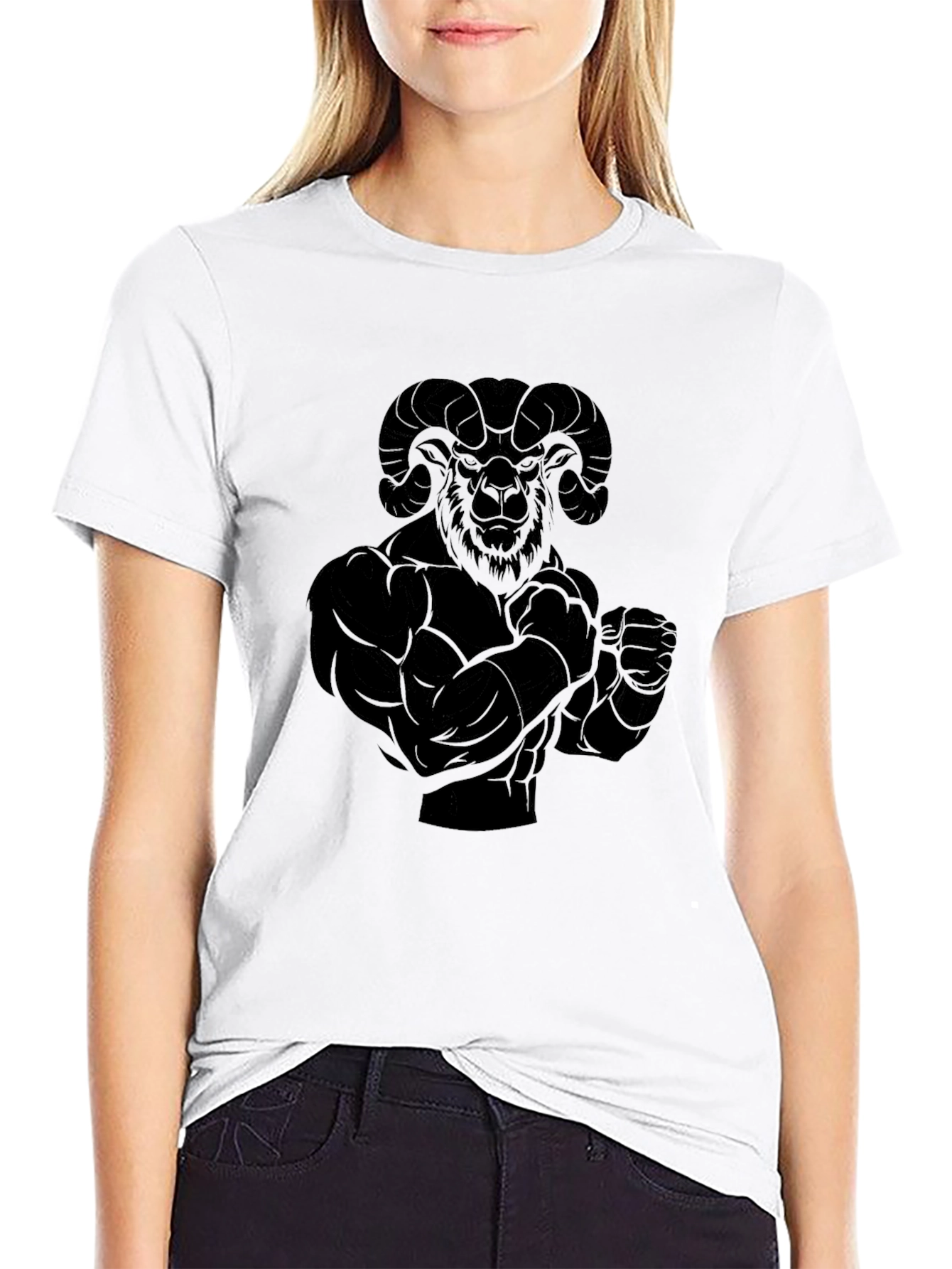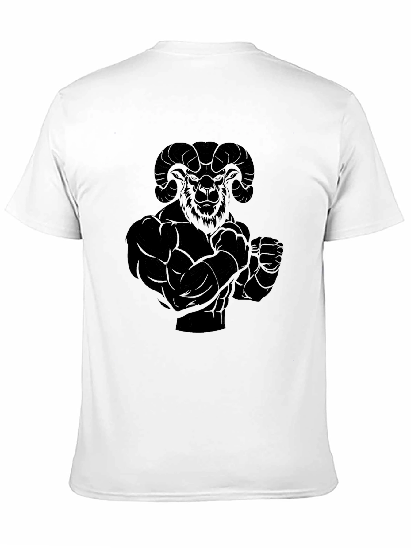 Show off your power with this bold black t-shirt. The design features a muscular ram graphic on the front, symbolizing strength and determination. This tee is perfect for workouts, casual outings, or making a statement wherever you go. Made from a comfortable, breathable fabric, this shirt is a must-have for anyone who wants to display a fierce, edgy style. Pair it with jeans or shorts for a cool, confident look.