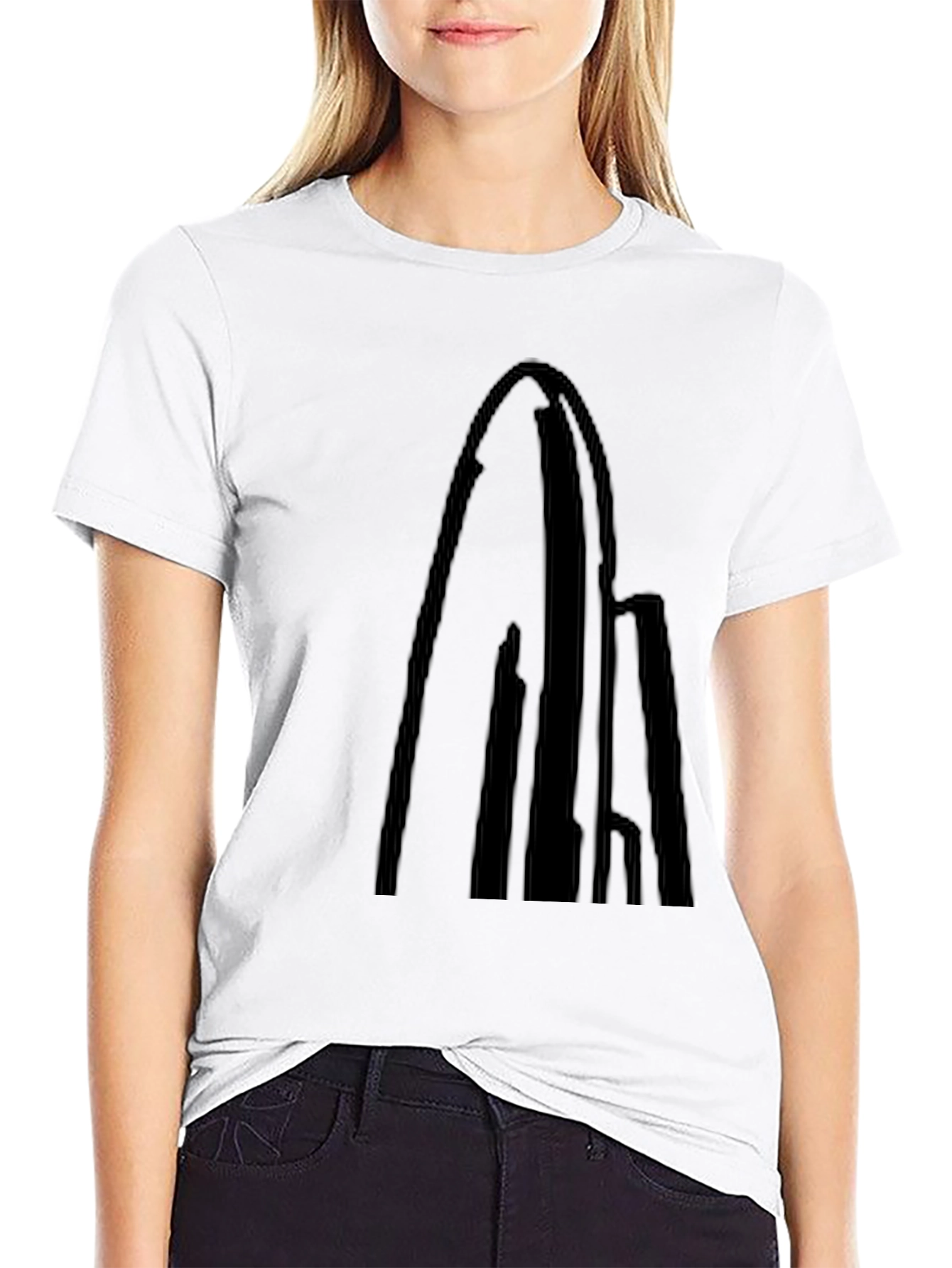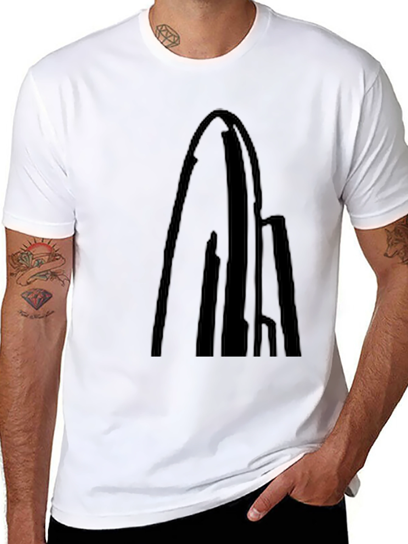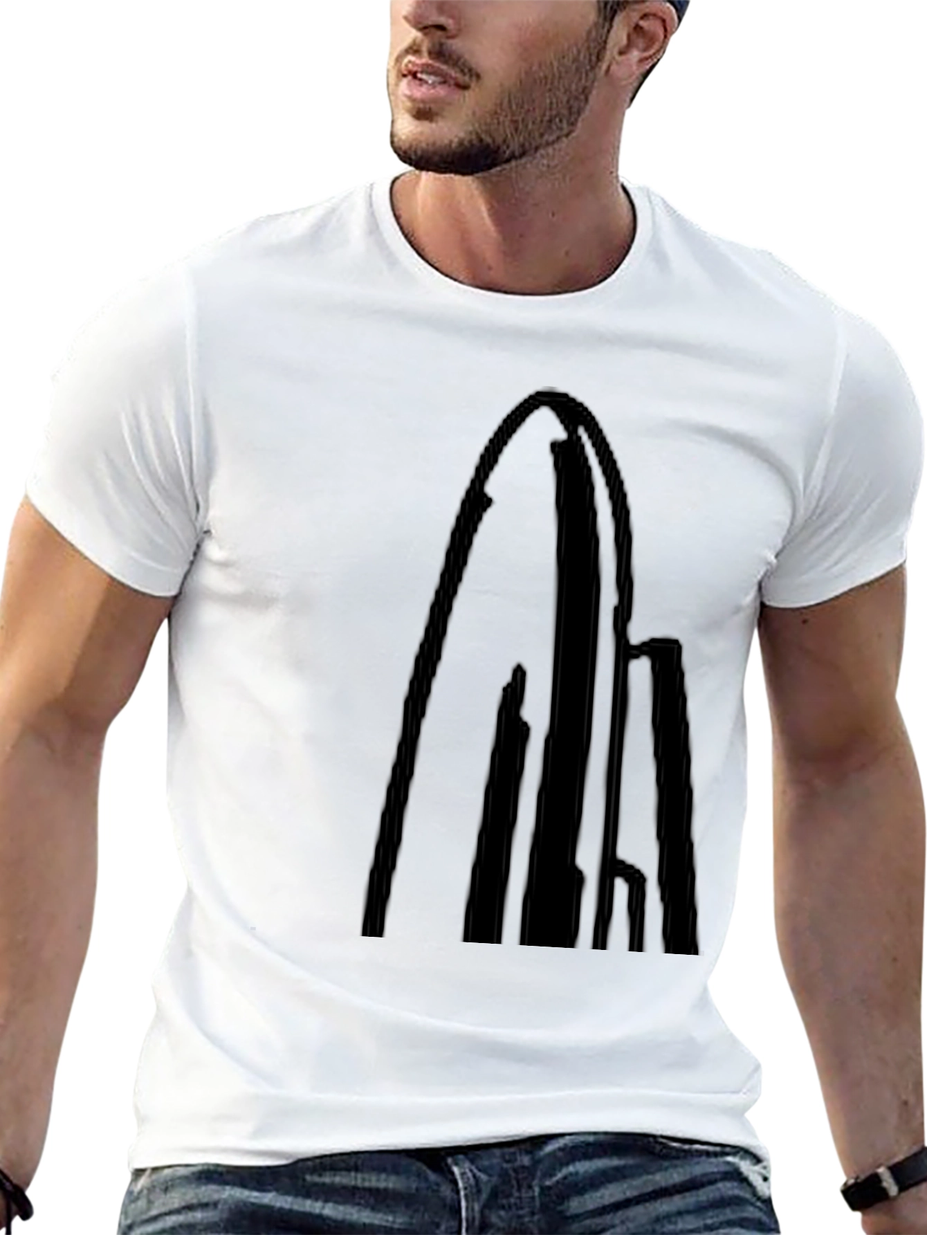Show your love for St. Louis with this stylish black t-shirt! The shirt features a bold, minimalist graphic of the iconic Gateway Arch and surrounding buildings. Made from a comfortable, breathable fabric, this tee is perfect for casual everyday wear, whether you're exploring the city or relaxing at home. Its classic fit and versatile design make it a great addition to any wardrobe. Get yours today and represent the spirit of St. Louis in style!