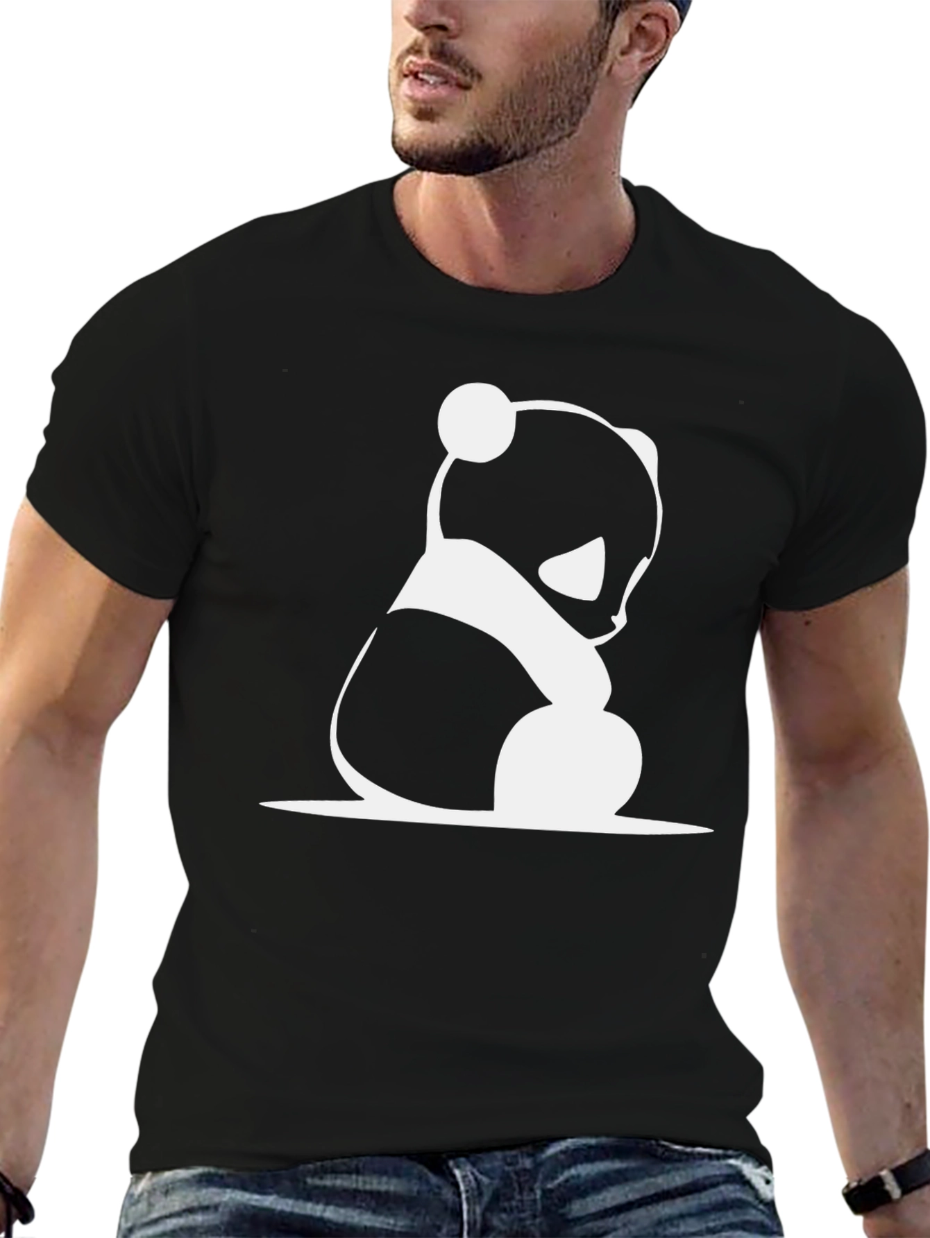 This stylish black t-shirt features a unique graphic print of a panda. The design is minimalist and eye-catching, making it a great conversation starter. Made from comfortable fabric, this tee is perfect for casual wear, whether you're running errands or hanging out with friends. The black color provides a versatile backdrop for the white panda design, allowing it to pop. Show off your fun side with this must-have tee. Available in a range of sizes to ensure the perfect fit.