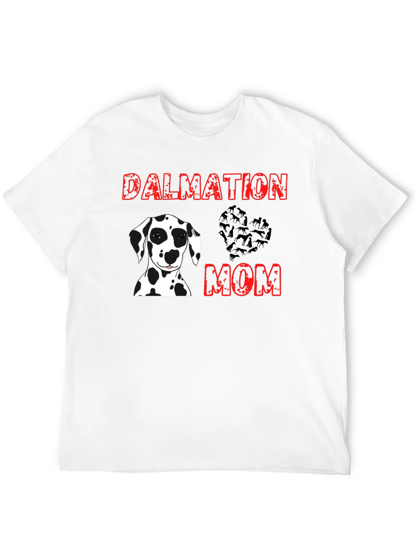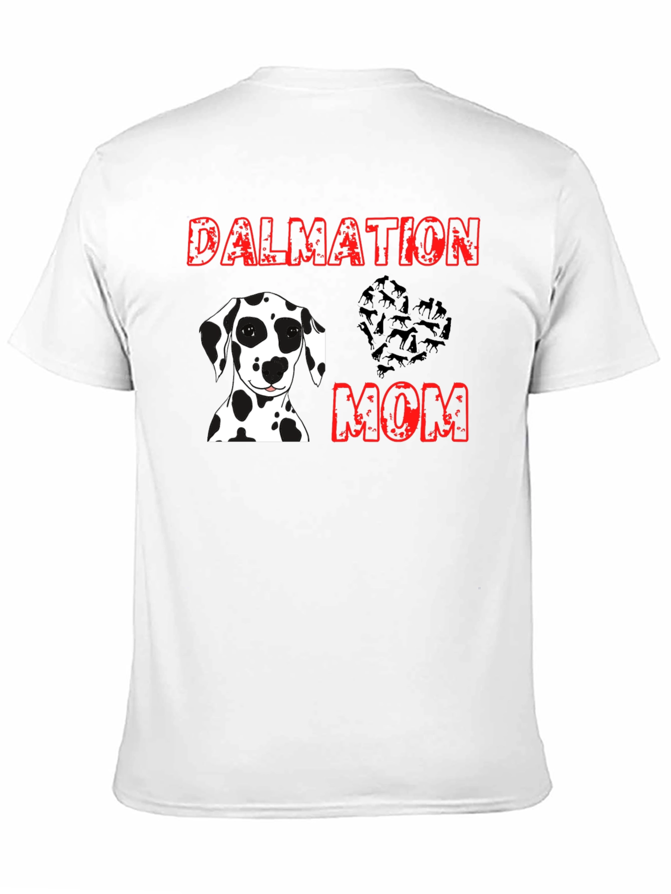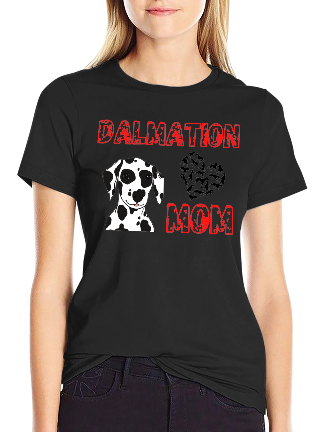 Show off your love for your furry friend with this stylish Dalmatian Mom t-shirt. This black tee features a vibrant red graphic design, showcasing a Dalmatian head and the words 'Dalmatian Mom.' The design also includes a unique heart shape filled with Dalmatian silhouettes. The comfortable material makes it ideal for everyday wear. This t-shirt is perfect for dog lovers, casual outings, or as a thoughtful gift for the Dalmatian obsessed mother in your life. Grab yours today and wear your heart on your sleeve (or rather, your chest)!