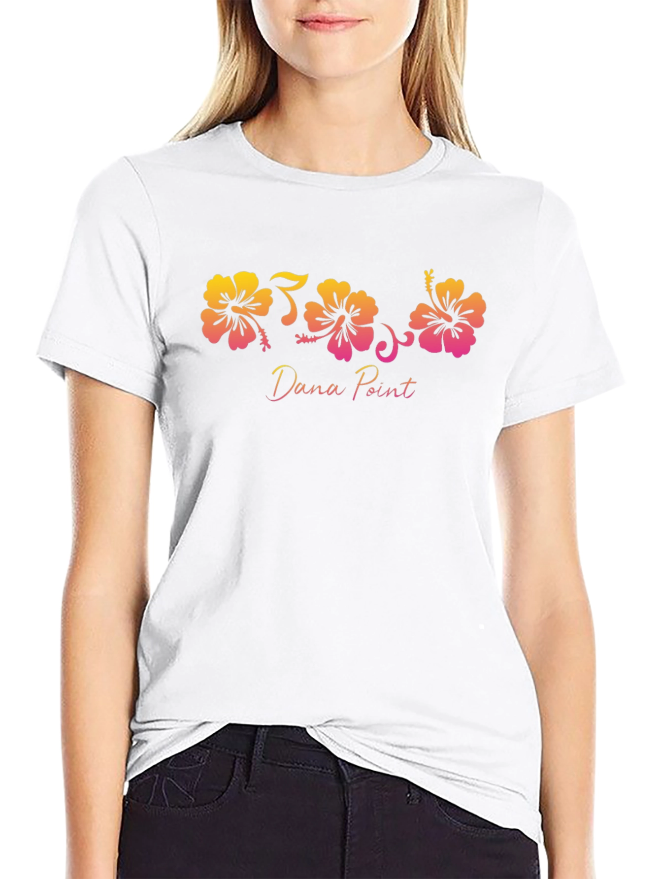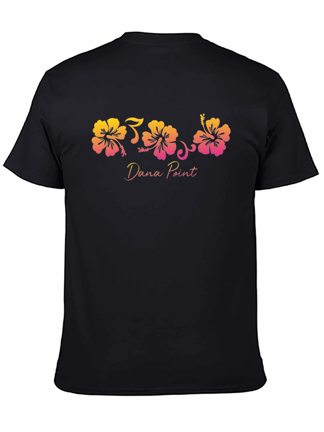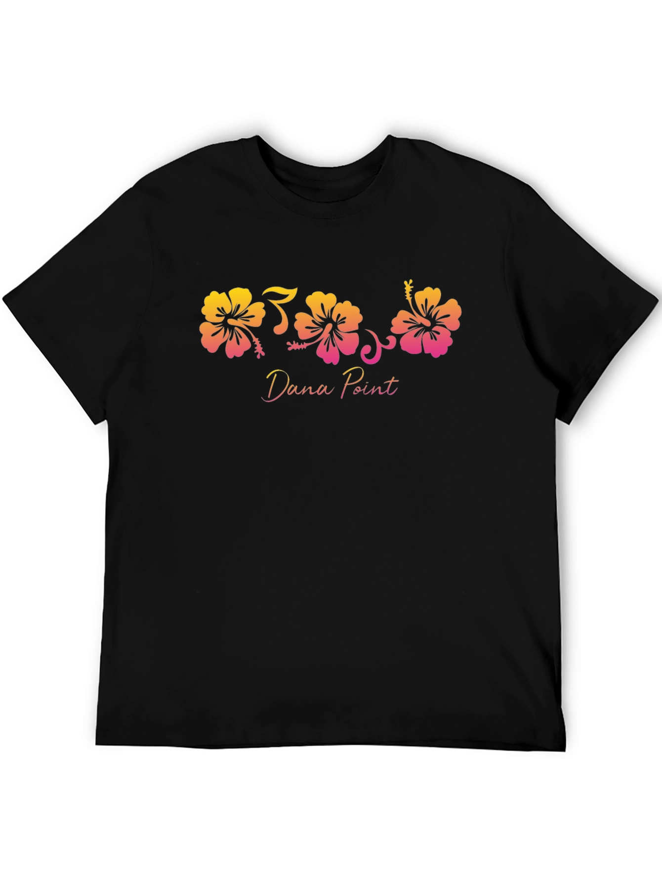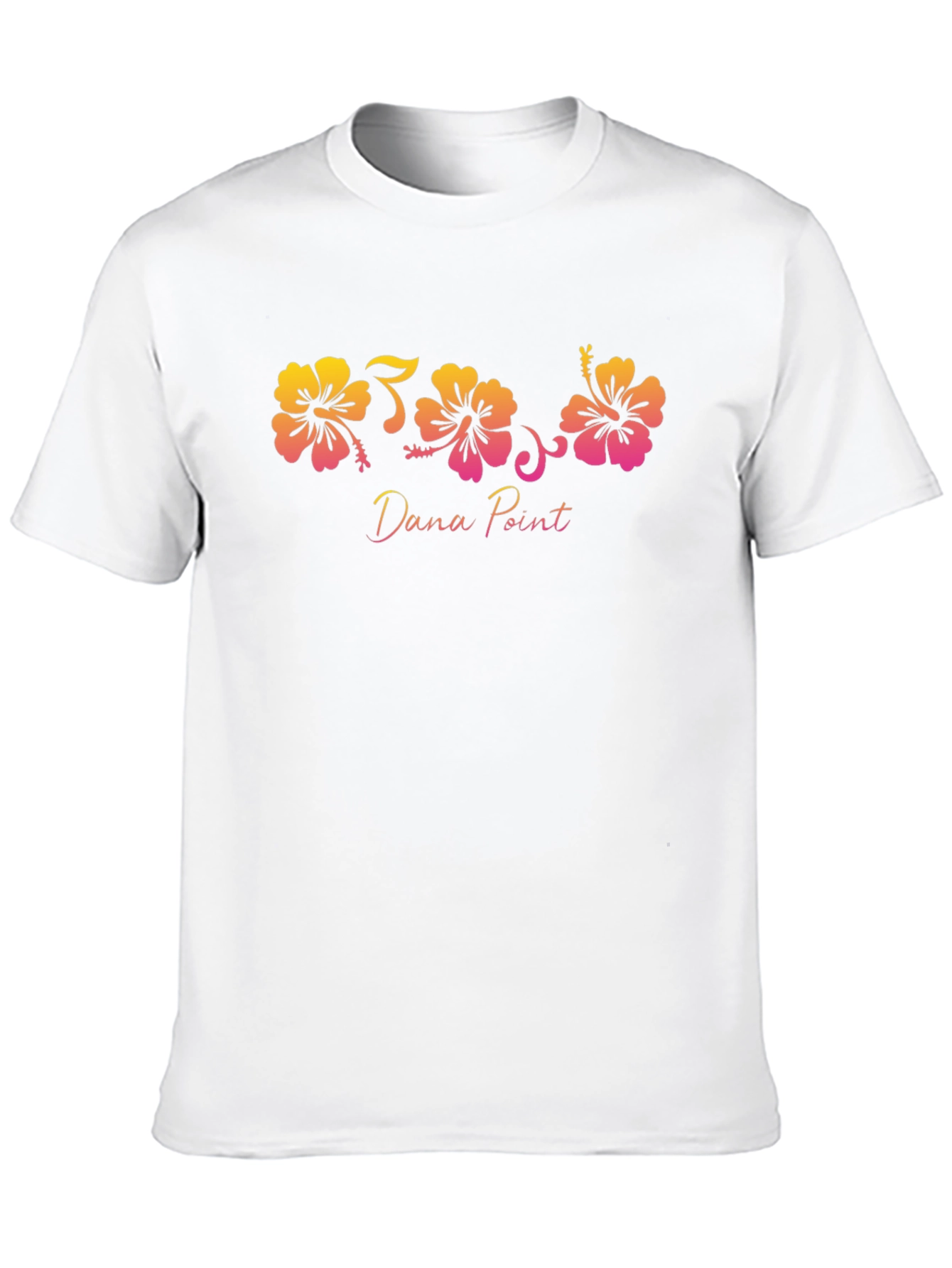 Show your love for Dana Point with this stylish and unique t-shirt. Featuring a vibrant floral graphic with hibiscus flowers in a striking gradient of yellow, orange, and pink. The "Dana Point" text adds a personalized touch. Perfect for casual outings, beach trips, or everyday wear. Made from comfortable and durable fabric, this t-shirt offers both style and comfort. A great way to represent your favorite coastal city with a touch of floral charm. A must-have for Dana Point enthusiasts!