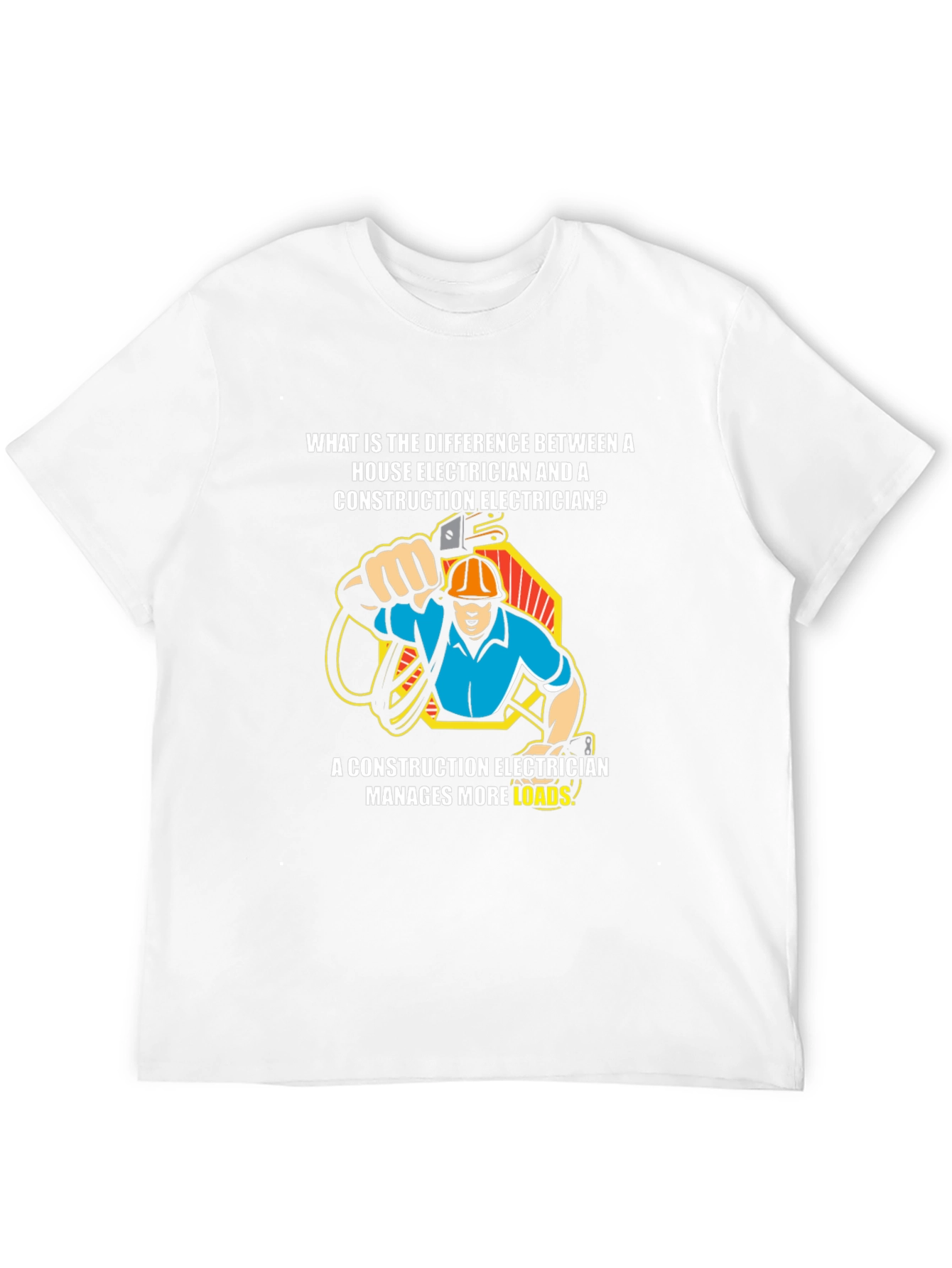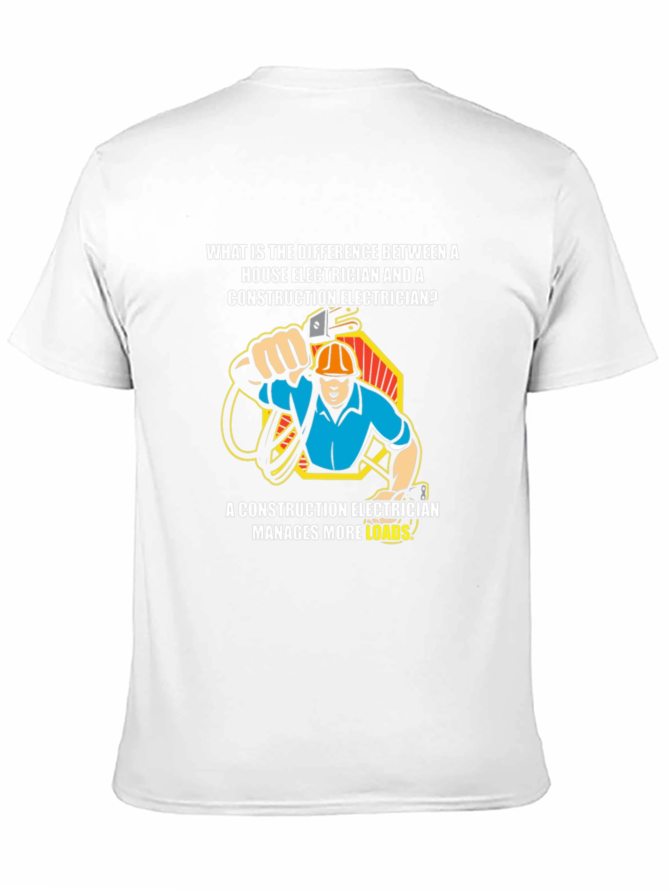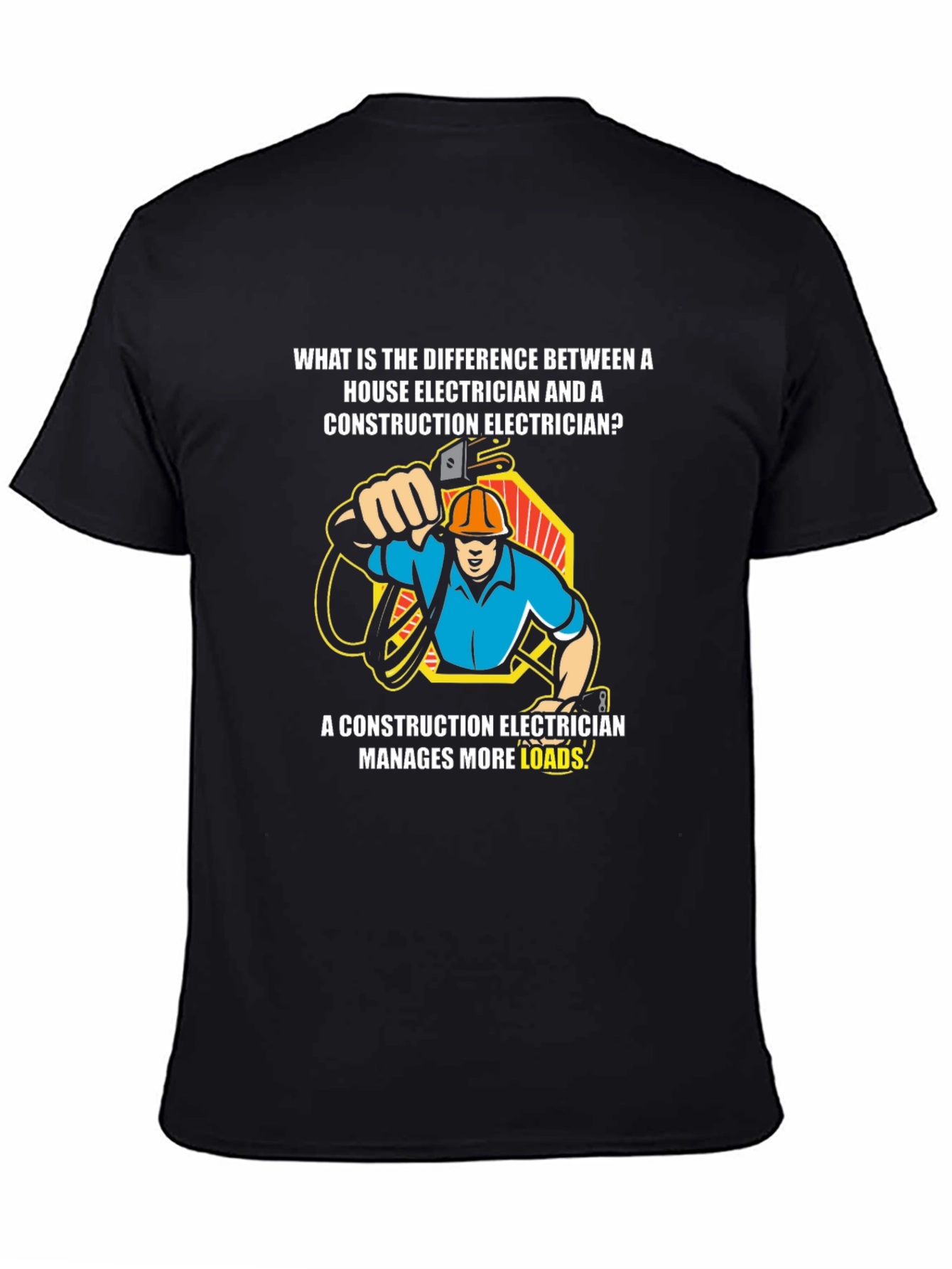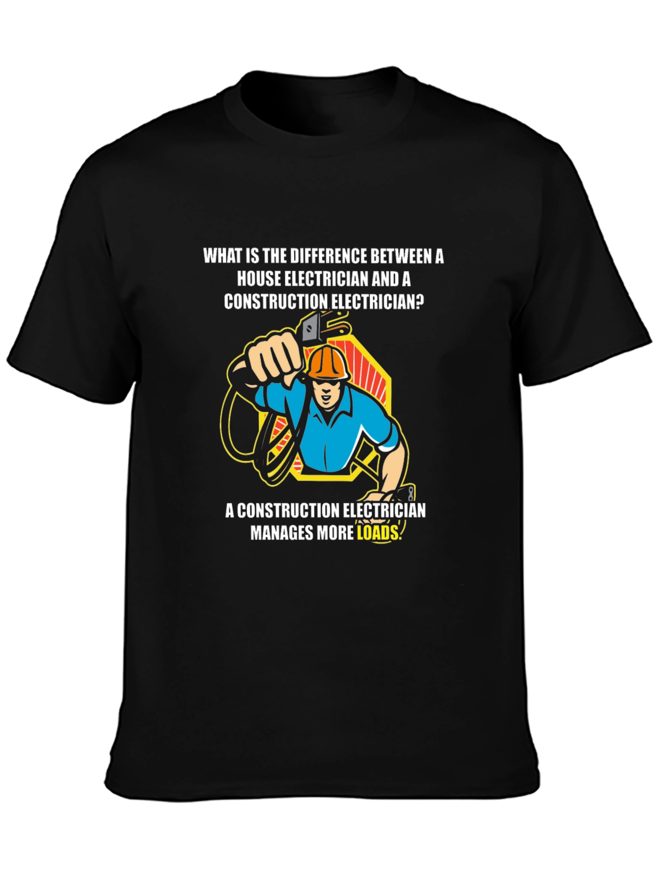 This black t-shirt features a humorous electrician joke, making it a fun and unique addition to any wardrobe. The shirt showcases a cartoon graphic of an electrician, complete with a hard hat and tools. The joke text adds a playful element, sparking conversation and laughter. Made from a comfortable-looking fabric, this shirt is suitable for everyday wear. Its casual style makes it perfect for relaxed outings, DIY projects, or as a lighthearted gift for the electricians in your life. Show off your personality and love for humor with this eye-catching tee.
