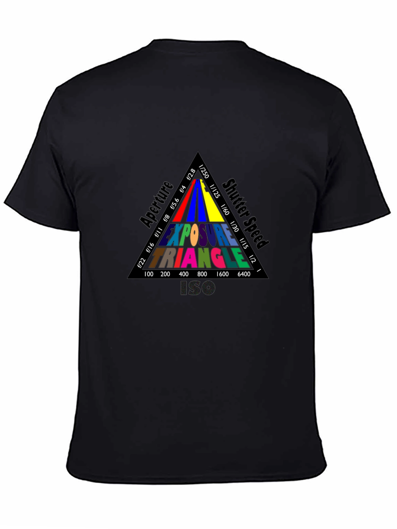 Showcase your passion for photography with this unique black T-shirt featuring a vibrant "Exposure Triangle" design. This shirt graphically represents the relationship between Aperture, Shutter Speed, and ISO. A perfect apparel for photography enthusiasts, students, or professionals. Made from comfortable fabric, this tee is ideal for casual wear, photography meetups, or as a gift for the photographer in your life. Embrace your love for capturing the perfect shot with this stylish and informative T-shirt!