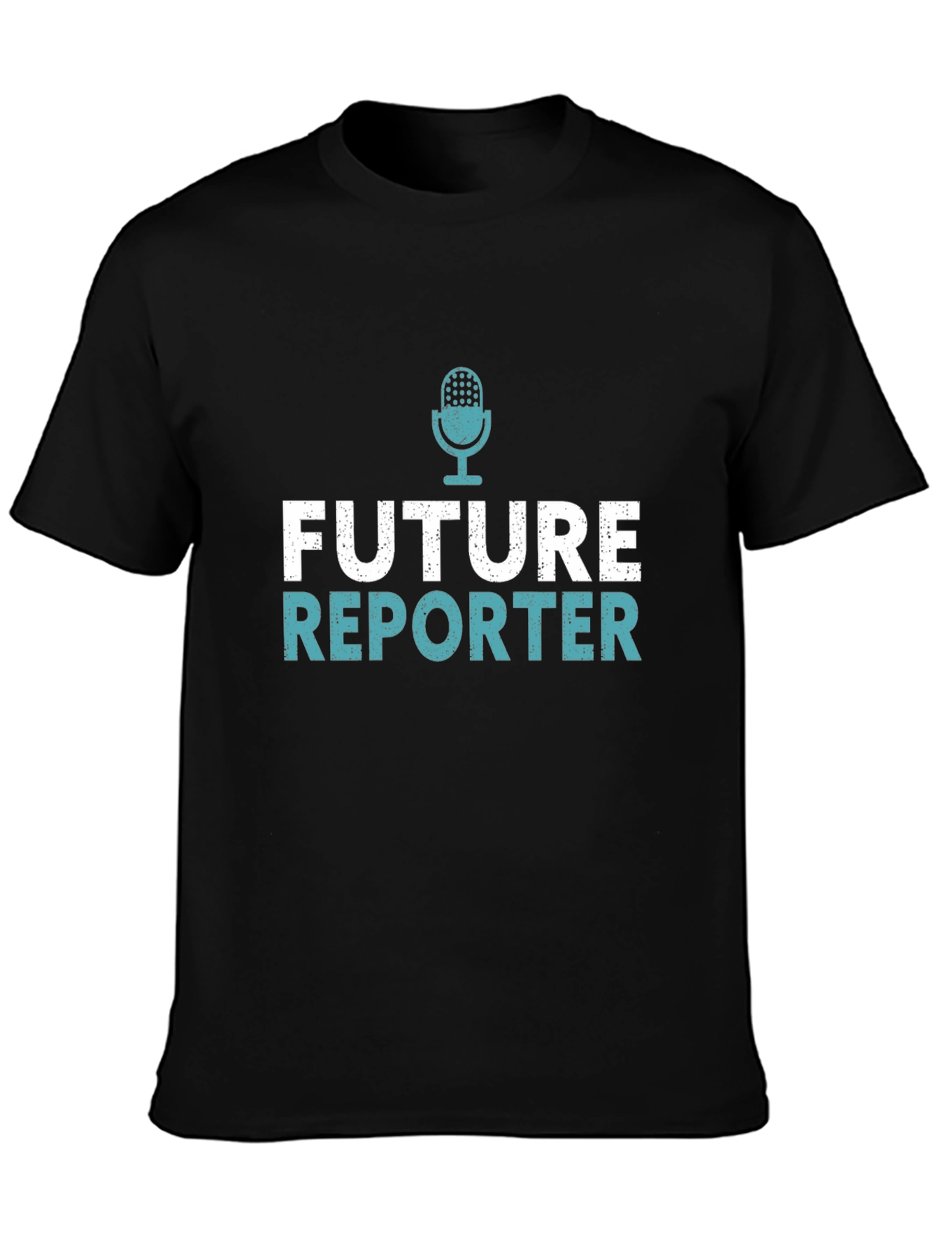 Show your passion for journalism with this stylish black cotton t-shirt. Featuring a bold "FUTURE REPORTER" print in white and teal, this tee is perfect for aspiring journalists and news enthusiasts. The design includes a classic microphone graphic, adding a touch of authenticity. Made from soft, breathable cotton, this shirt offers all-day comfort and durability. Ideal for casual wear, school events, or journalism conferences. Makes a great gift for students, reporters, and media professionals. Express your ambitions with this unique and eye-catching t-shirt.