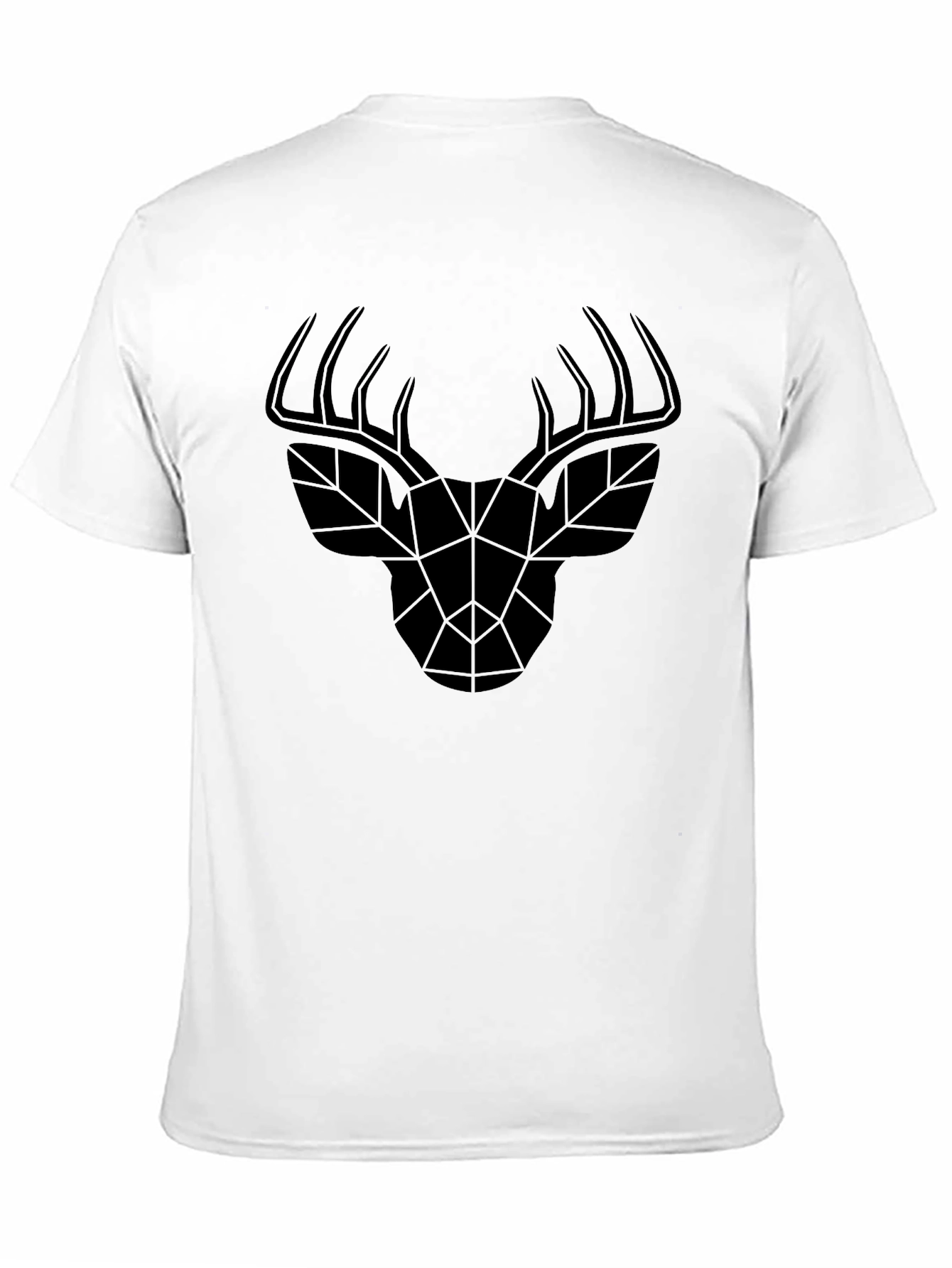 Show off your modern style with this striking black T-shirt. The minimalist design features a geometric deer head, creating a bold and contemporary look. Made from comfortable material, this shirt is perfect for casual outings, concerts, or just relaxing at home. Pair it with jeans, shorts, or even dress it up with a blazer for a unique urban vibe. The eye-catching design is sure to make a statement wherever you go. A must-have for anyone who appreciates geometric art and wildlife.