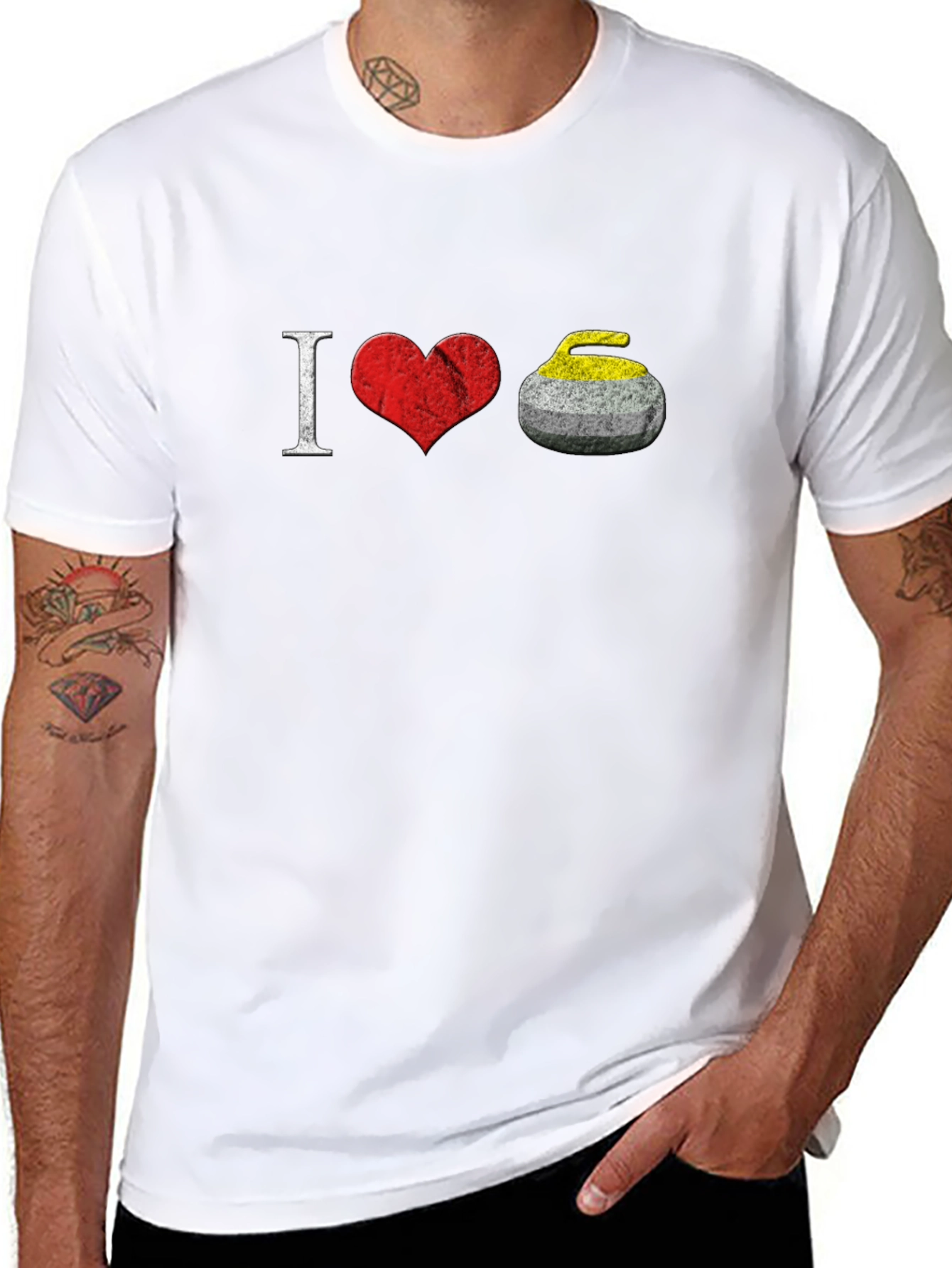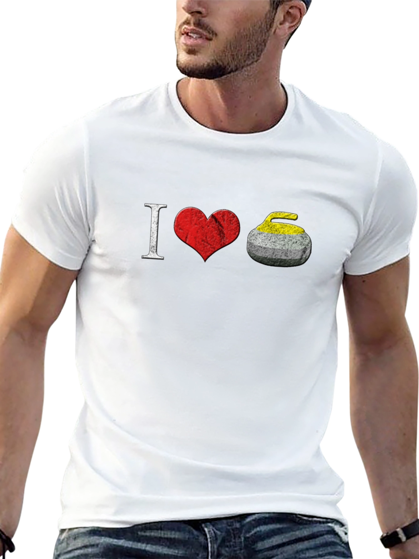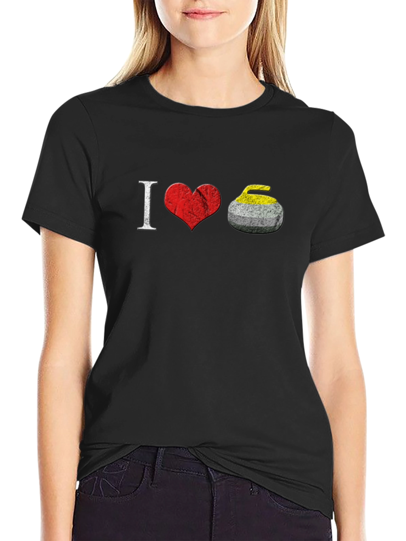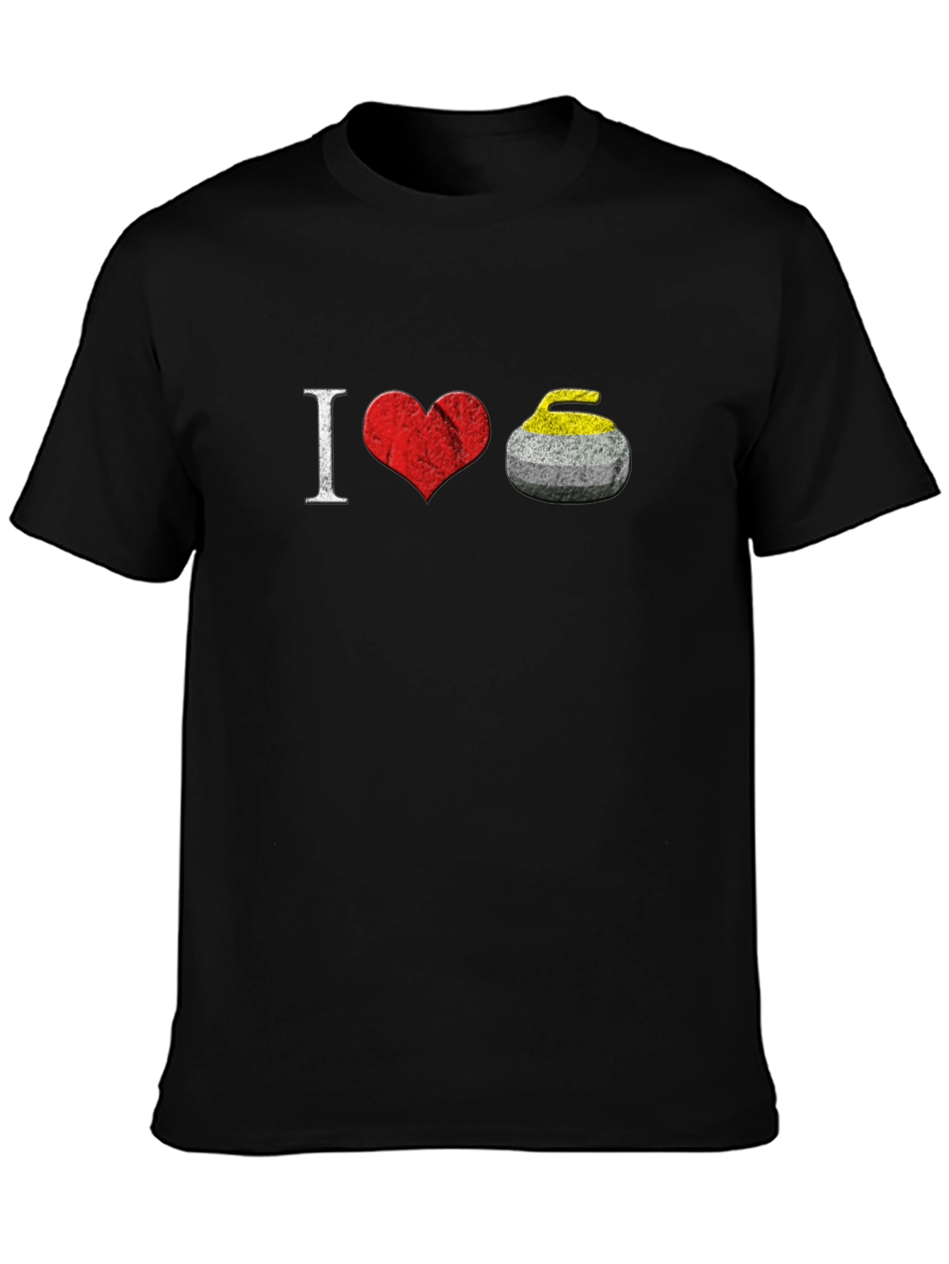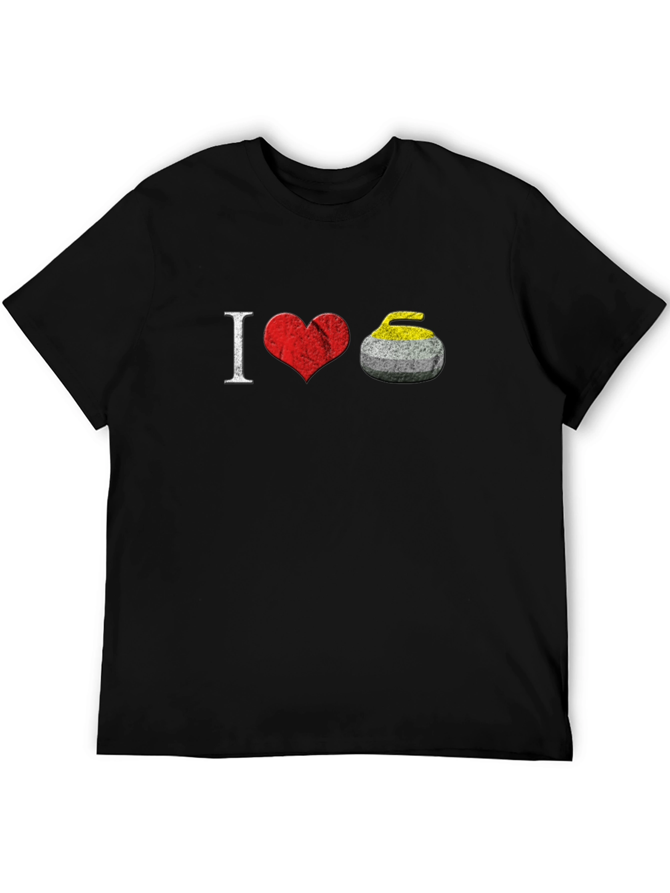 Show your passion for the sport with this 'I Love Curling' T-shirt! This eye-catching black tee features a creative design, with the letter 'I' followed by a red heart graphic and a curling stone, symbolizing your love for the game. Made from comfortable, breathable fabric, this casual shirt is perfect for everyday wear. Whether you're heading to a curling match, lounging at home, or looking for a unique gift for a curling enthusiast, this t-shirt is an excellent choice. Let the world know where your heart lies with this awesome tee!