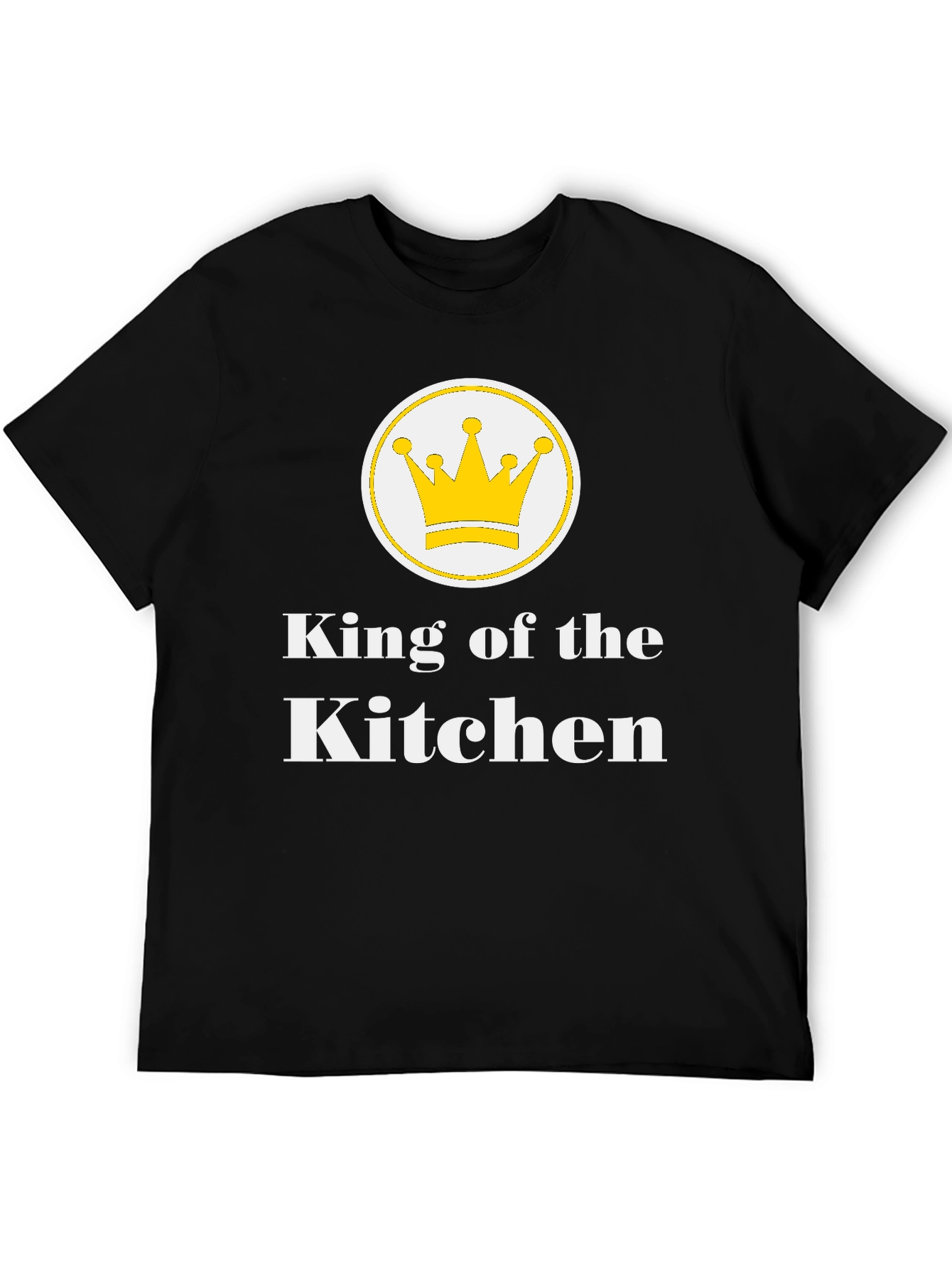 Show off your culinary skills with this stylish "King of the Kitchen" graphic tee. Made from a comfortable, dark-colored fabric, this shirt features a bold white text design with a crowned emblem. The circular emblem is bordered with gold. It's perfect for chefs, home cooks, and anyone who reigns supreme in the kitchen. Ideal for casual wear, cooking classes, or as a gift for the food enthusiast in your life. Express your passion for cooking with this unique and eye-catching tee.