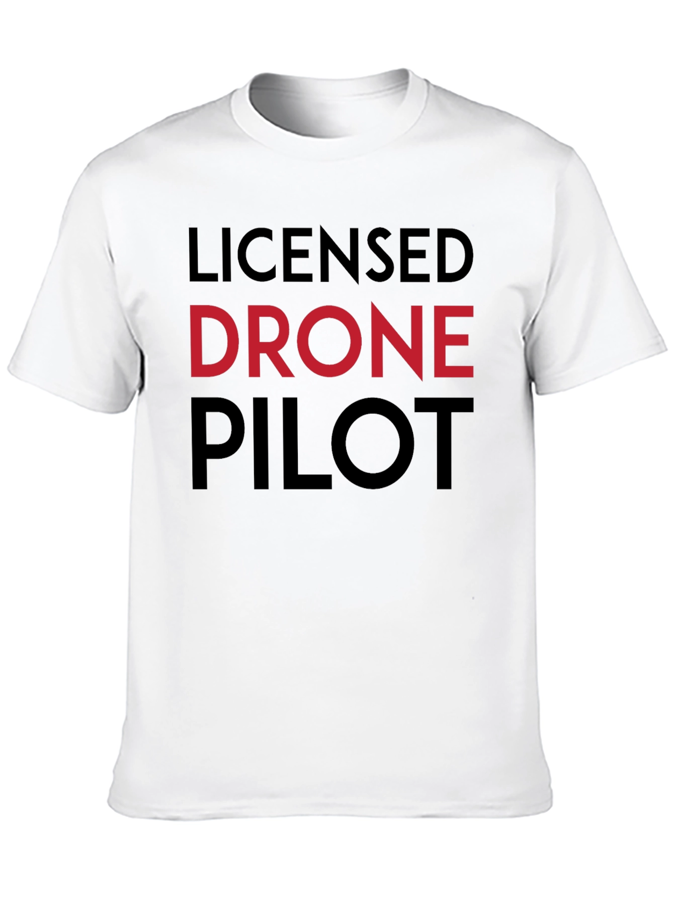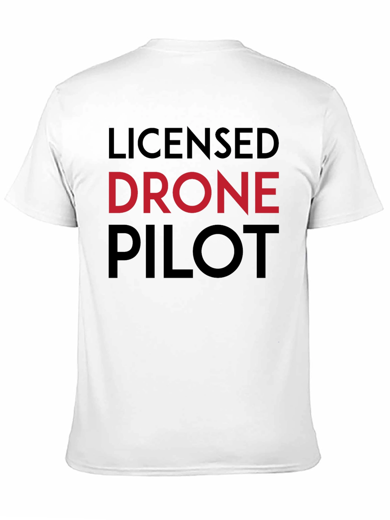 Show off your passion with this stylish black t-shirt. Featuring the words 'Licensed Drone Pilot' in bold lettering, with 'DRONE' highlighted in striking red, this tee makes a statement. Perfect for drone enthusiasts and professionals, this shirt is ideal for casual wear, drone meetups, or as a gift. Made from a comfortable-looking fabric, this shirt will feel great. Grab yours today and let the world know you're a certified drone pilot!