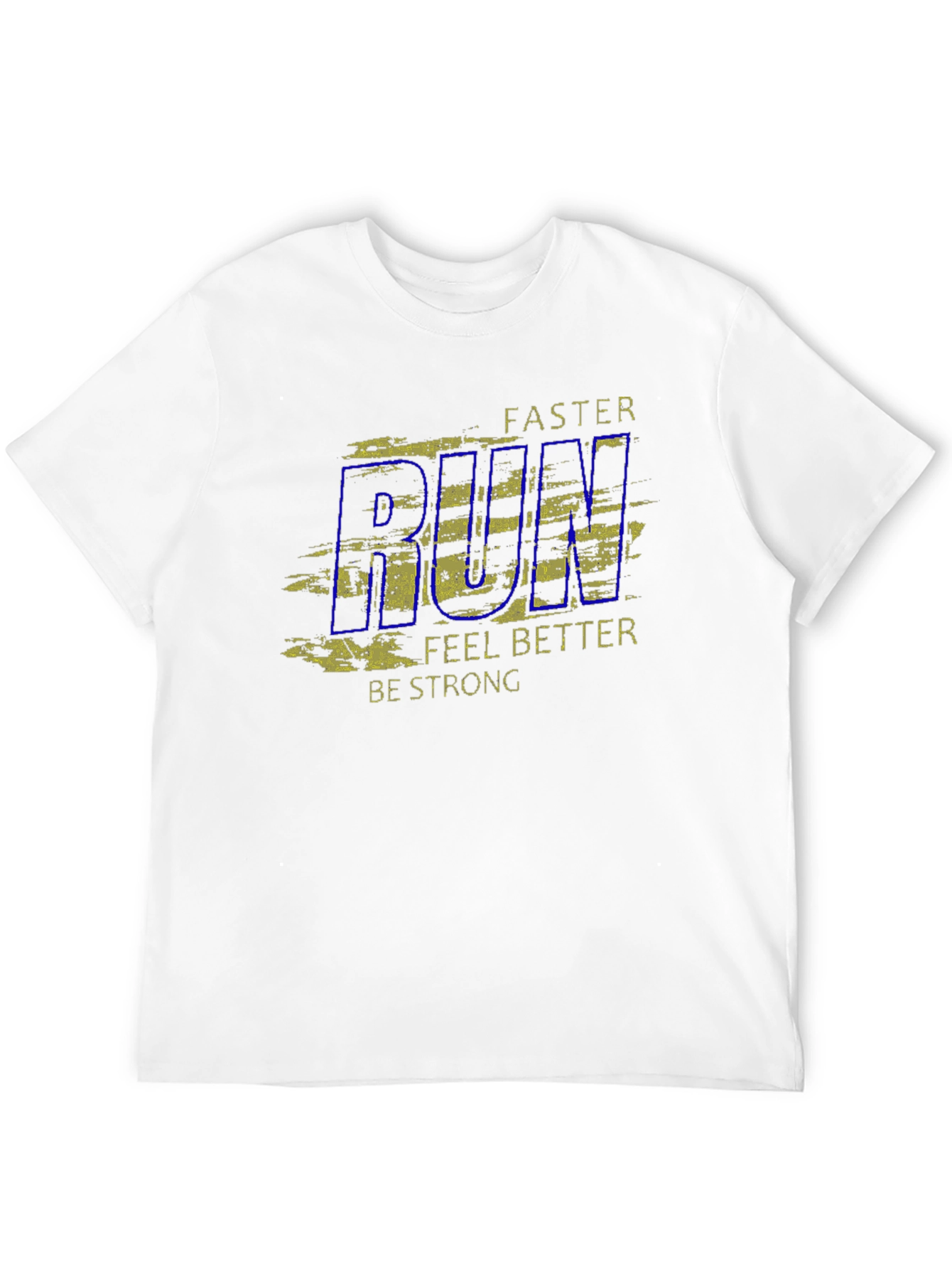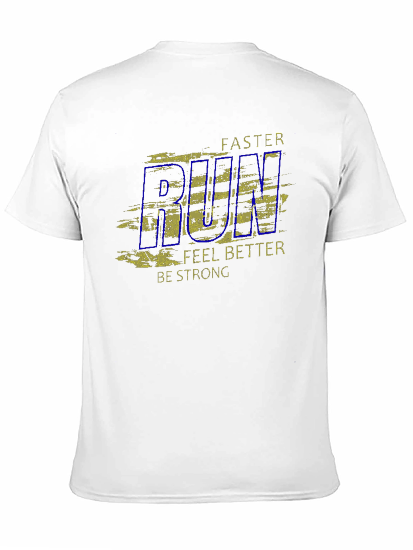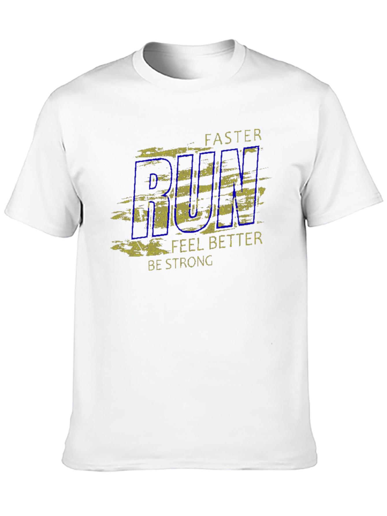 Elevate your workout wardrobe with this stylish black graphic tee for men. Featuring a bold "RUN" design with the words "FASTER, FEEL BETTER, BE STRONG", this tee is perfect for athletes and fitness enthusiasts. The distressed graphic print adds a vintage touch. Made from a comfortable, breathable fabric, this t-shirt ensures maximum comfort during any physical activity. Ideal for running, gym sessions, or casual wear, this versatile tee combines performance and style. Show off your dedication to fitness with this eye-catching and motivational t-shirt.