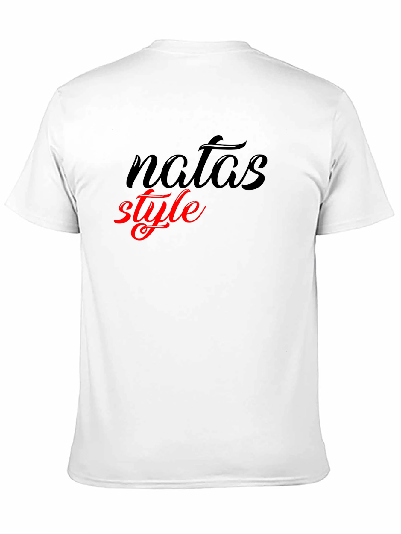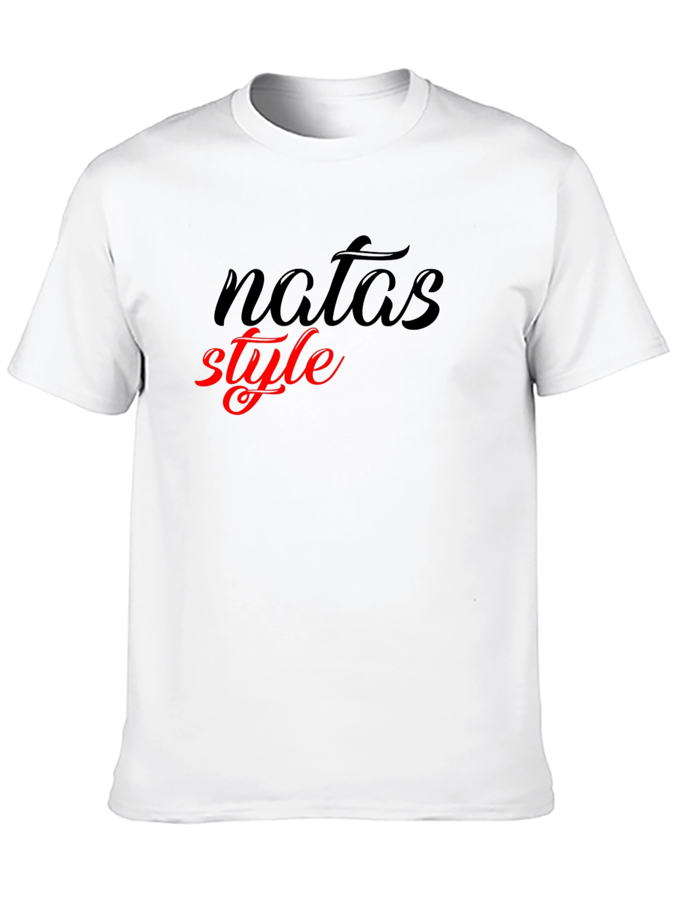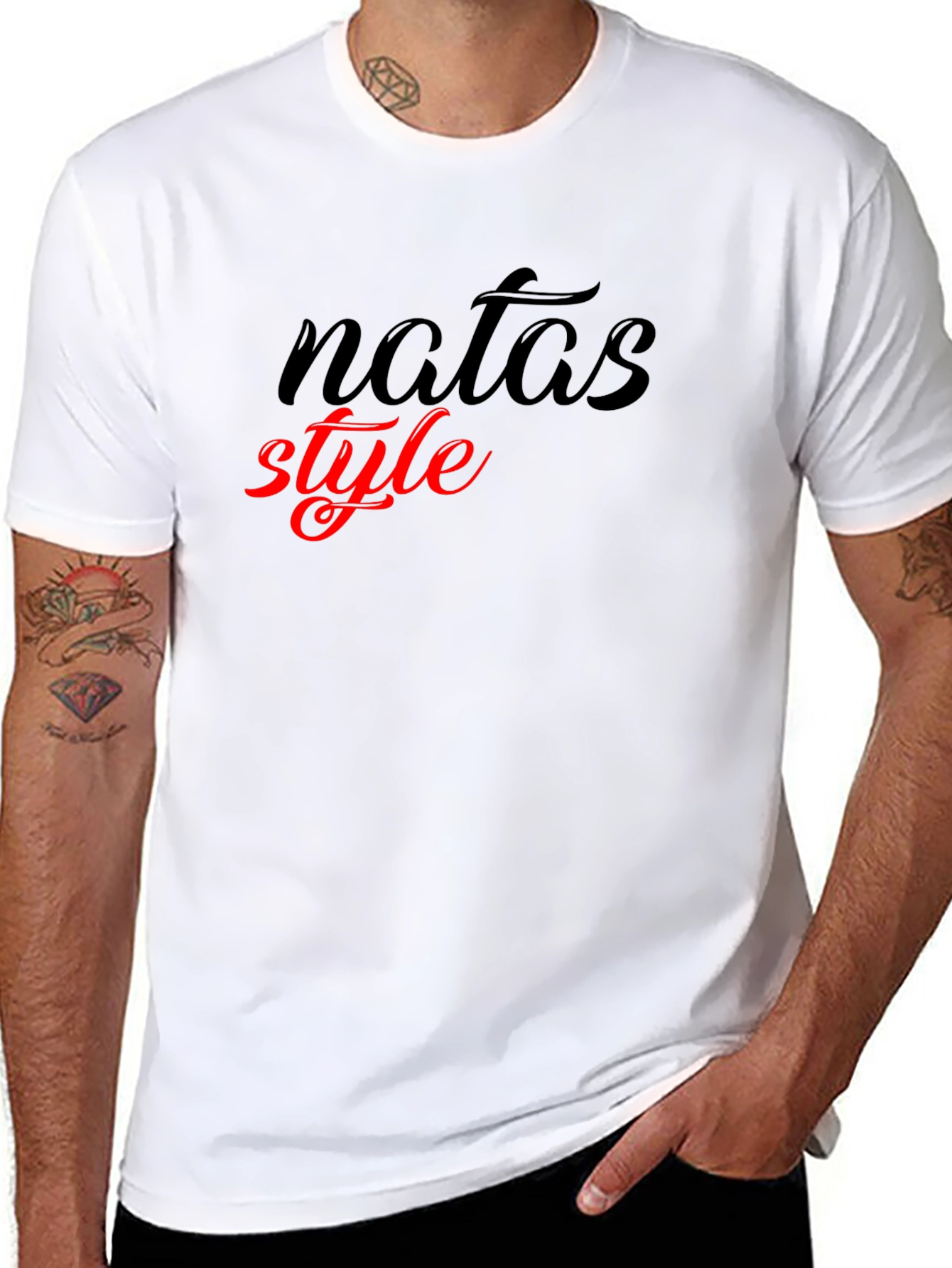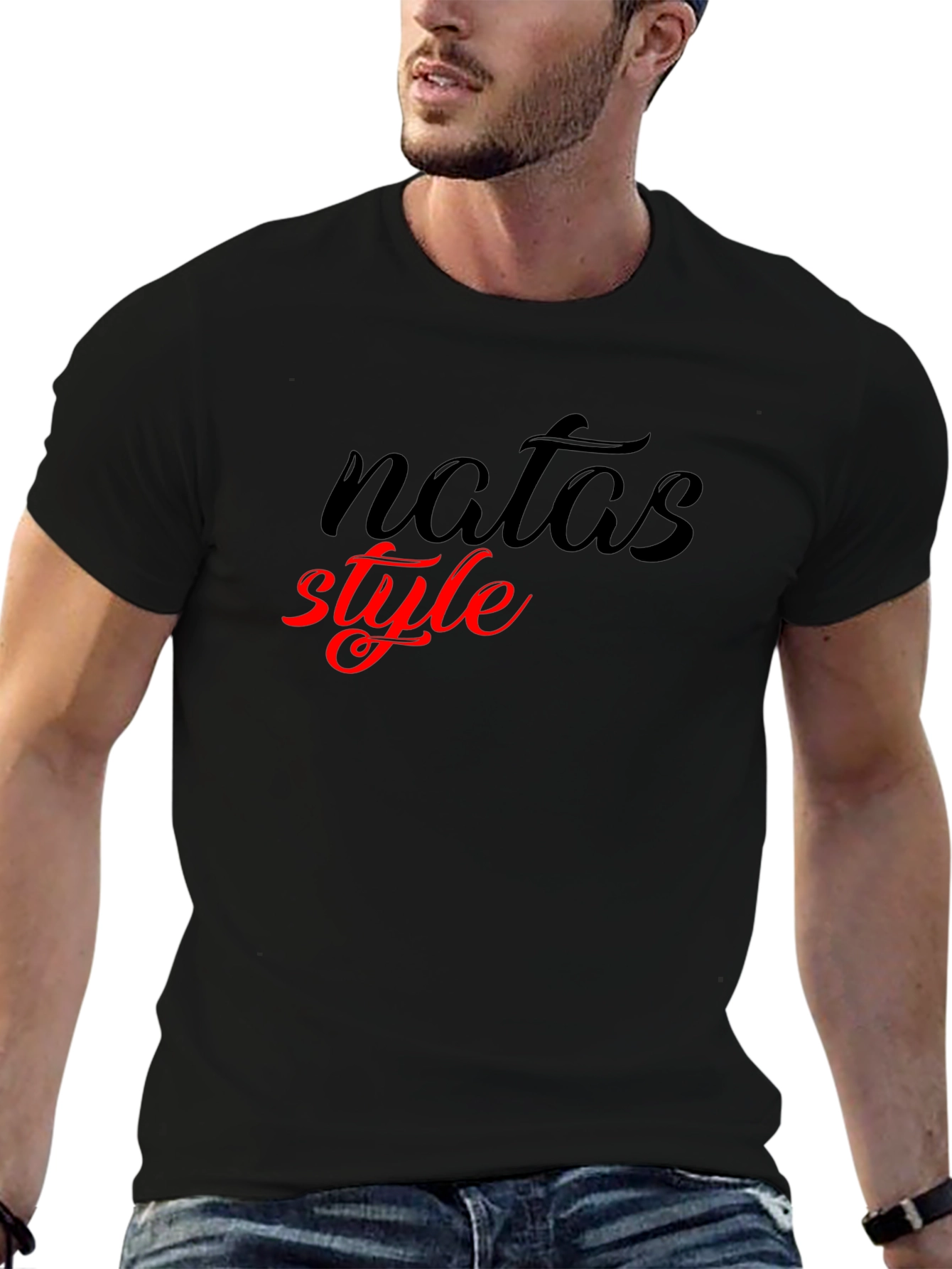 Elevate your casual wardrobe with this sleek black t-shirt. The soft, breathable fabric ensures all-day comfort. It features a striking "natas style" design in a modern font, with 'natas' in black and 'style' in vibrant red, making it a standout piece. The classic crew neck and short sleeves offer a versatile fit for any occasion. Perfect for everyday wear, weekend outings, or layering under a jacket, this t-shirt blends style and comfort effortlessly. Pair it with jeans, shorts, or chinos for a cool, contemporary look that expresses your unique style.