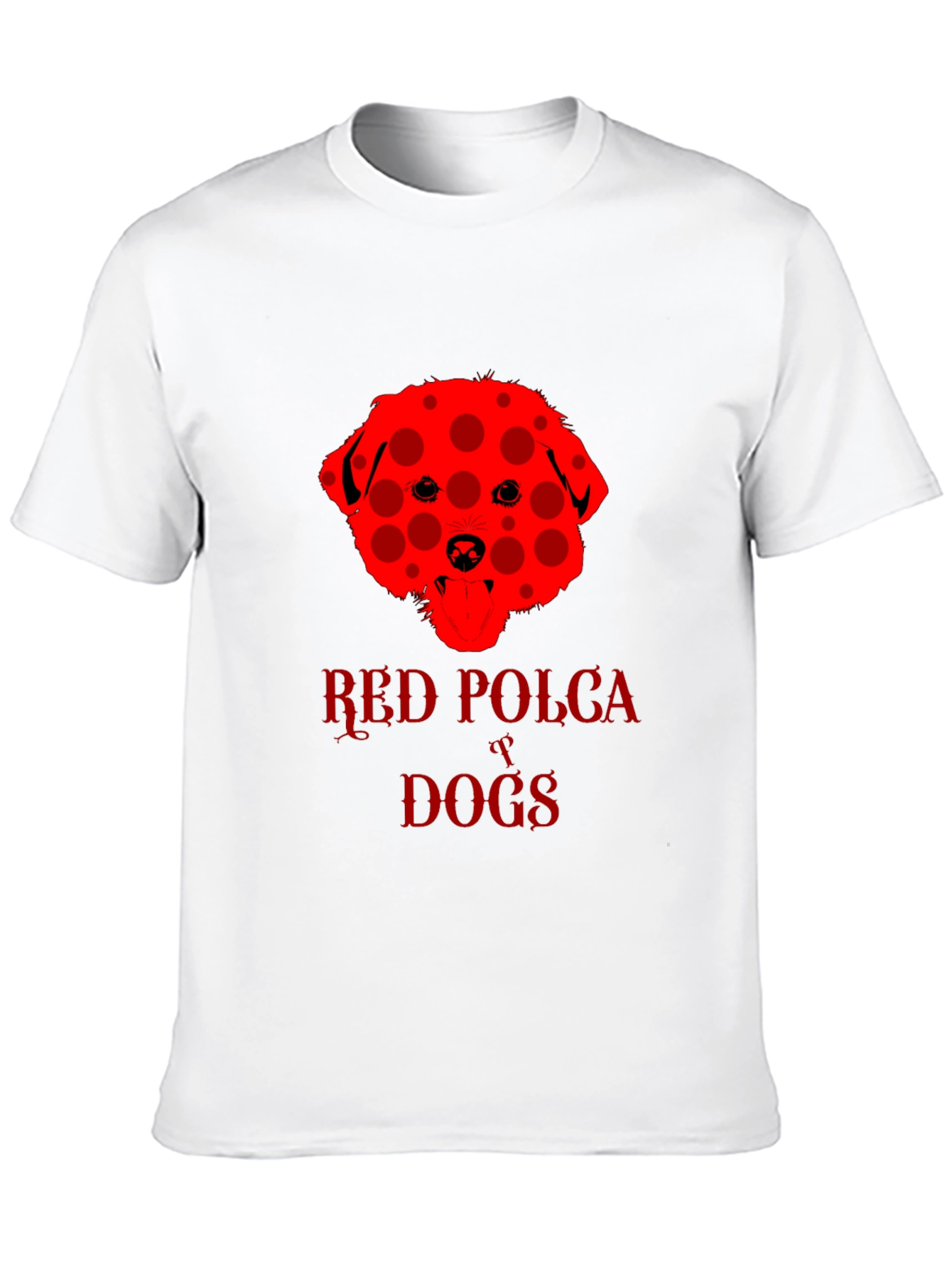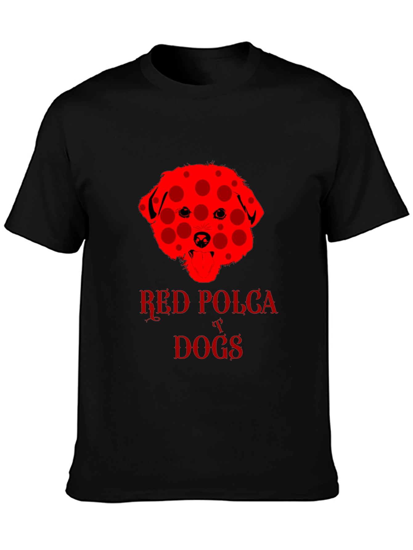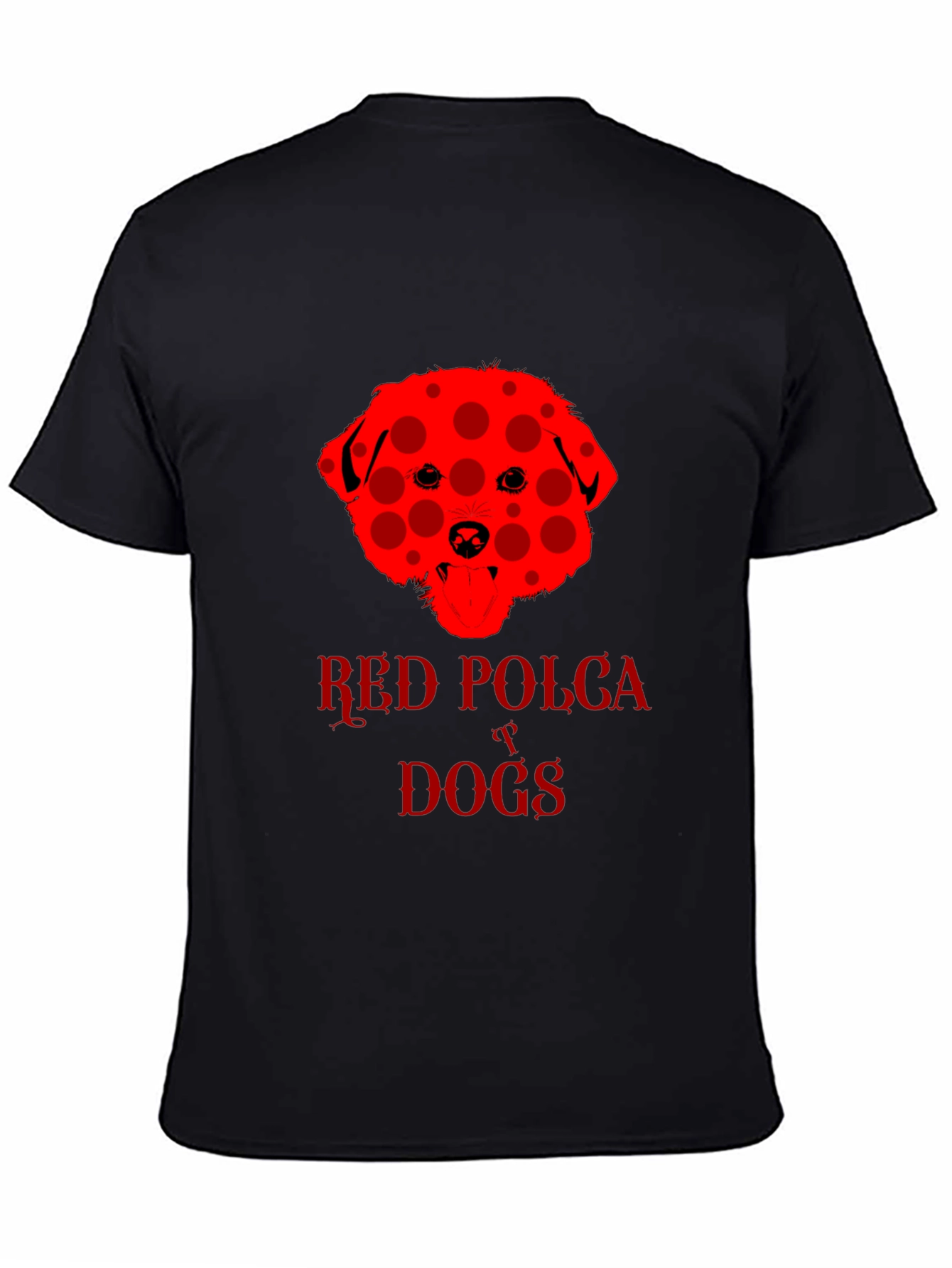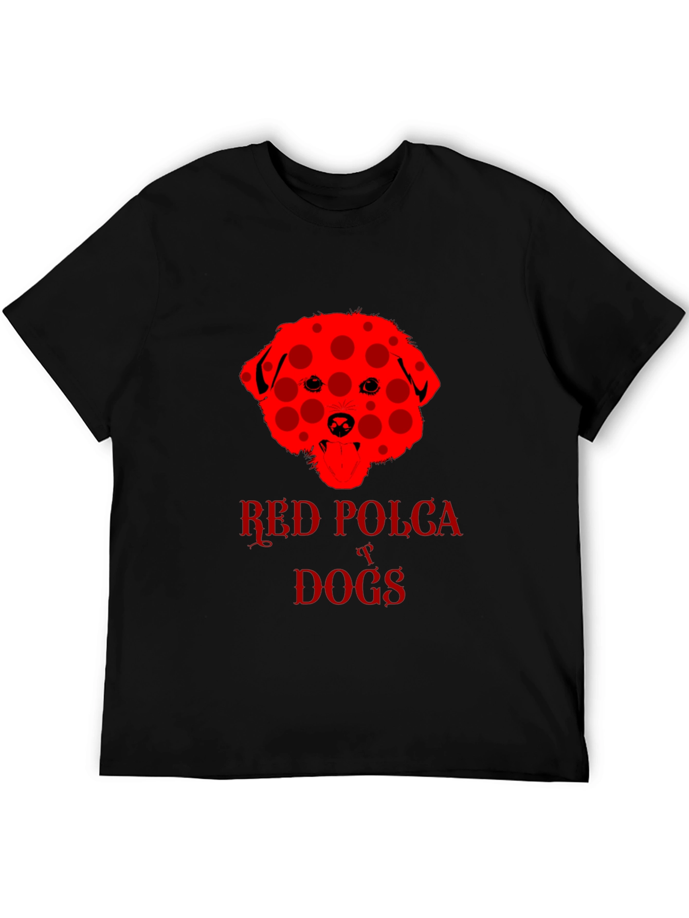 Show off your love for dogs with this eye-catching black t-shirt. The shirt features a unique red dog design with a playful polka dot pattern. "Red Polka Dogs" is emblazoned beneath the dog image in a matching red font. The classic crew neck and short sleeves provide a comfortable, casual fit. This tee is perfect for dog lovers and anyone who wants to add a touch of fun to their wardrobe. Wear it to the dog park, casual outings, or just lounging around the house. This shirt is sure to be a conversation starter and a fun way to express your personality.