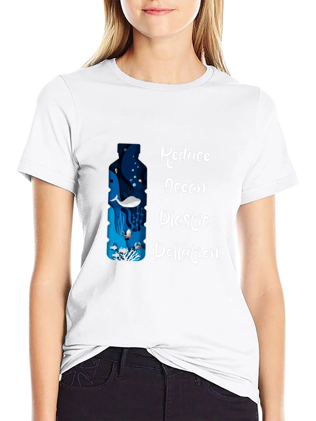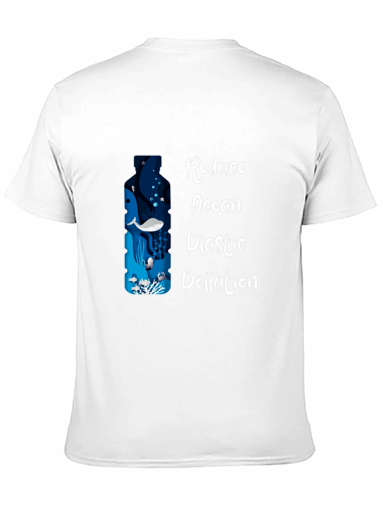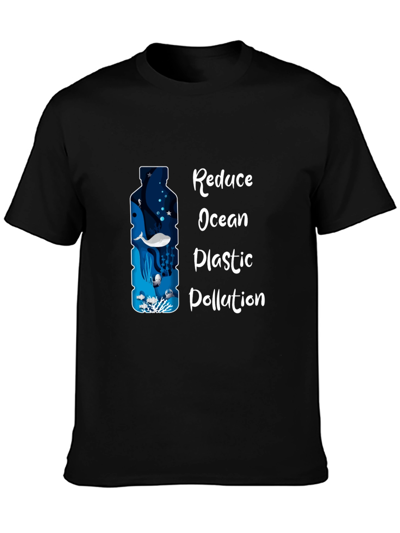 Show your support for ocean conservation with this stylish and meaningful graphic tee. The design features a creative graphic of ocean life depicted inside a plastic bottle, with the text 'Reduce Ocean Plastic Pollution' displayed beside it. Made from comfortable fabric, this black t-shirt is perfect for everyday wear. Wear it to the beach, environmental events, or as a statement piece. This tee is a great way to raise awareness about the importance of reducing plastic waste and protecting our oceans. A must-have for eco-conscious individuals who want to make a positive impact!