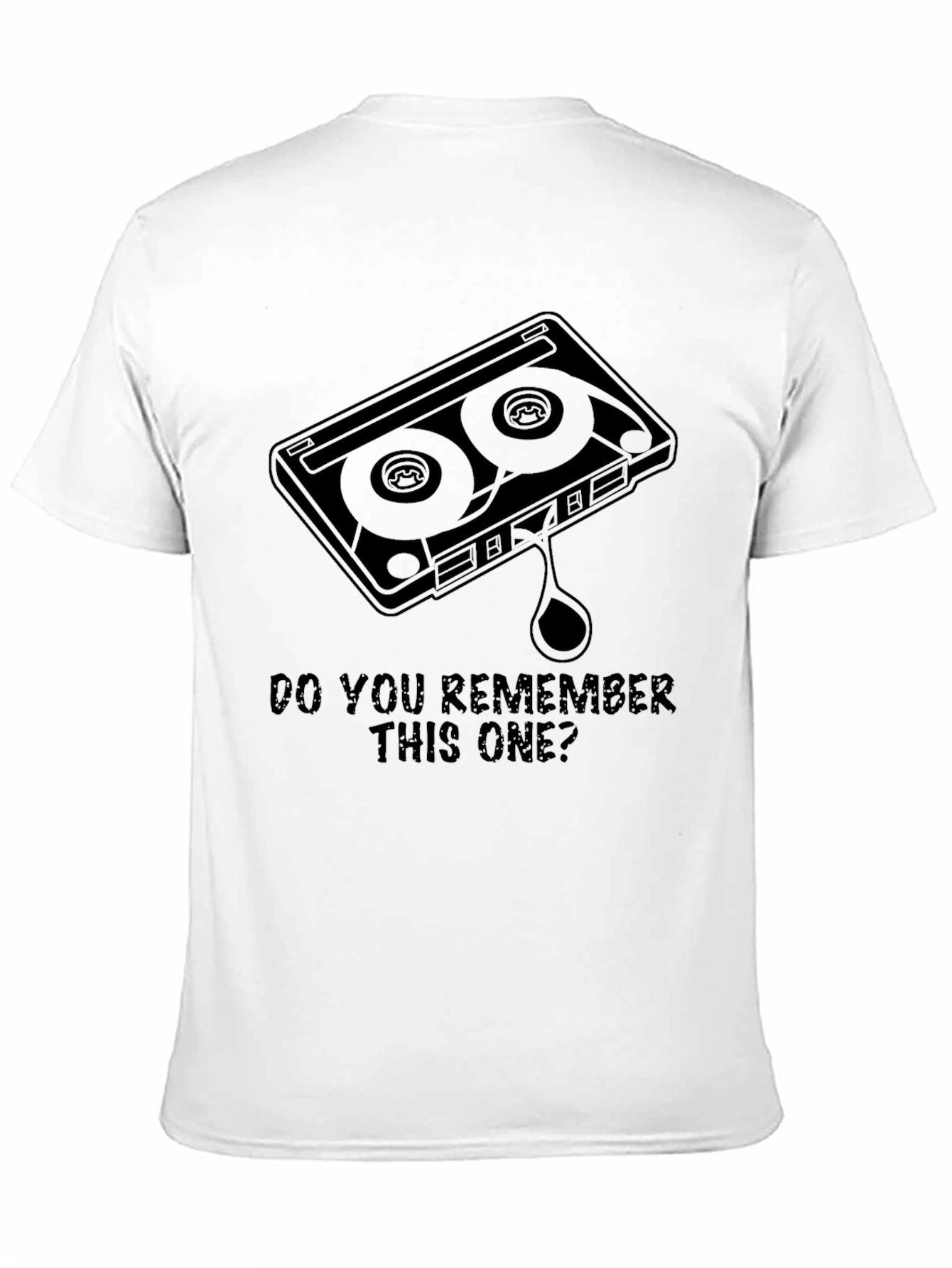 Rock a nostalgic vibe with this classic black tee. Featuring a detailed graphic of a retro cassette tape with a distinctive 'melted' design, this shirt is perfect for music lovers and vintage enthusiasts. The design also includes the phrase "DO YOU REMEMBER THIS ONE?" Made from comfortable, breathable fabric, this shirt is ideal for everyday wear, concerts, or casual outings. Show off your unique style and spark conversations with this eye-catching piece. A must-have for anyone who appreciates a blend of music history and contemporary fashion.