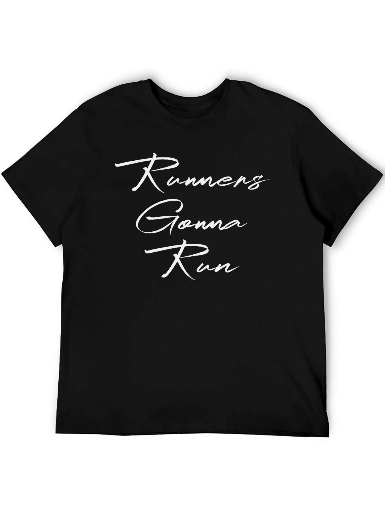 Show off your passion for running with this stylish black t-shirt. The tee features a bold "Runners Gonna Run" graphic in a clean, white font, perfect for casual wear or workouts. Crafted from a soft-looking fabric, this shirt offers both comfort and durability. Its classic fit makes it a versatile addition to any wardrobe. Ideal for runners, athletes, or anyone who loves a motivational statement. Wear it to the gym, on a run, or just around town to express your active lifestyle. Get yours today and run in style!