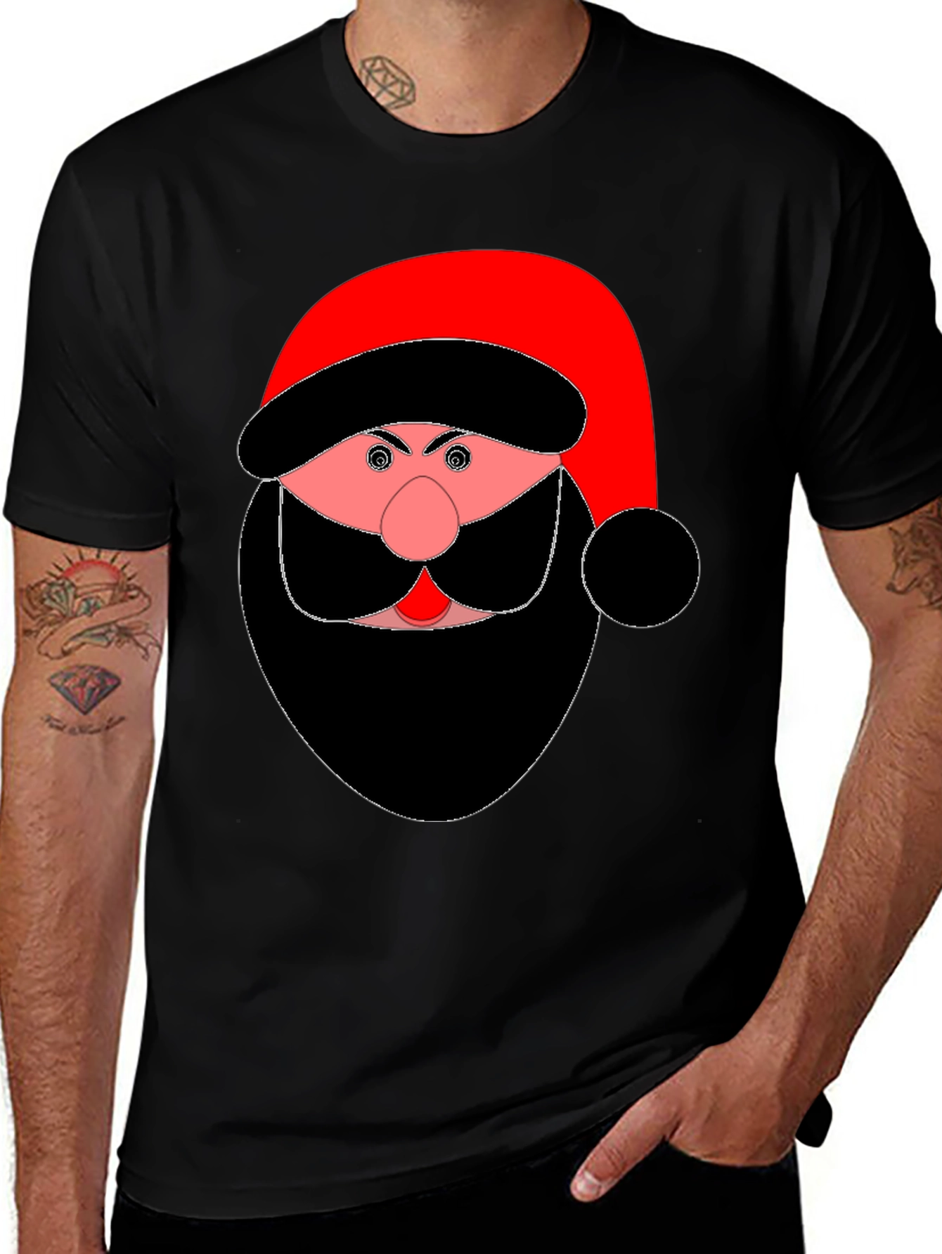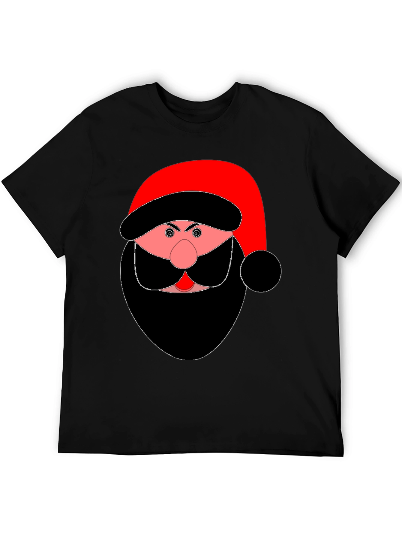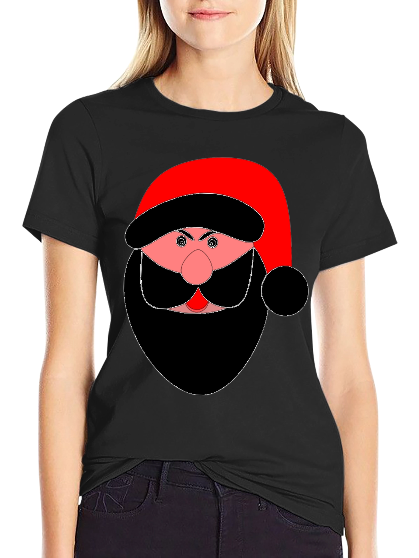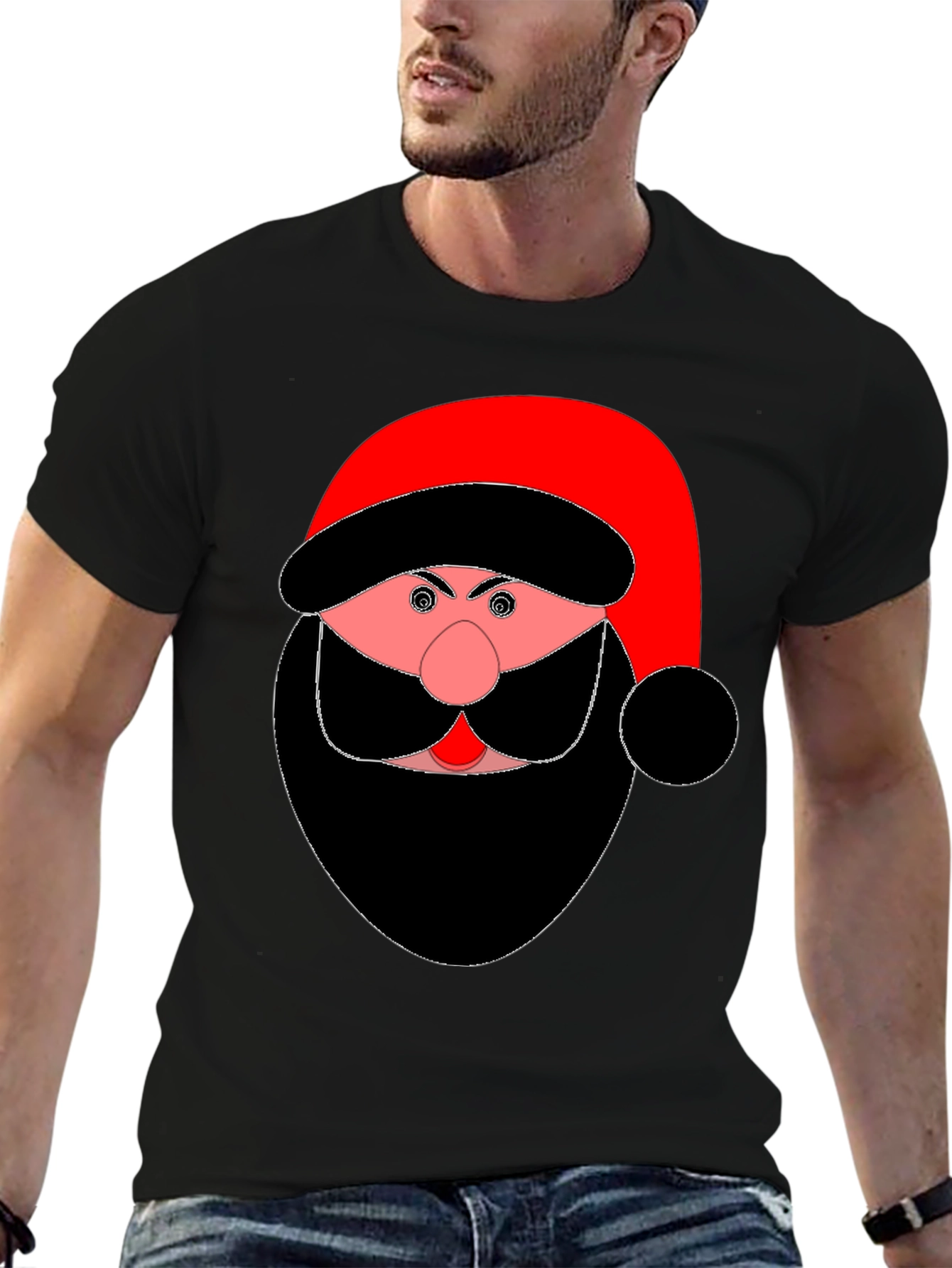 Get ready for the holidays with this eye-catching black t-shirt featuring a cartoon Santa Claus graphic. The design showcases Santa with a red hat, black beard, and a mischievous expression. Made from a soft, comfortable fabric, this tee is perfect for spreading Christmas cheer in a casual and fun way. Wear it to holiday parties, family gatherings, or while doing your Christmas shopping. This festive t-shirt is sure to be a conversation starter and a favorite piece in your holiday wardrobe. Grab yours now and get into the holiday spirit!