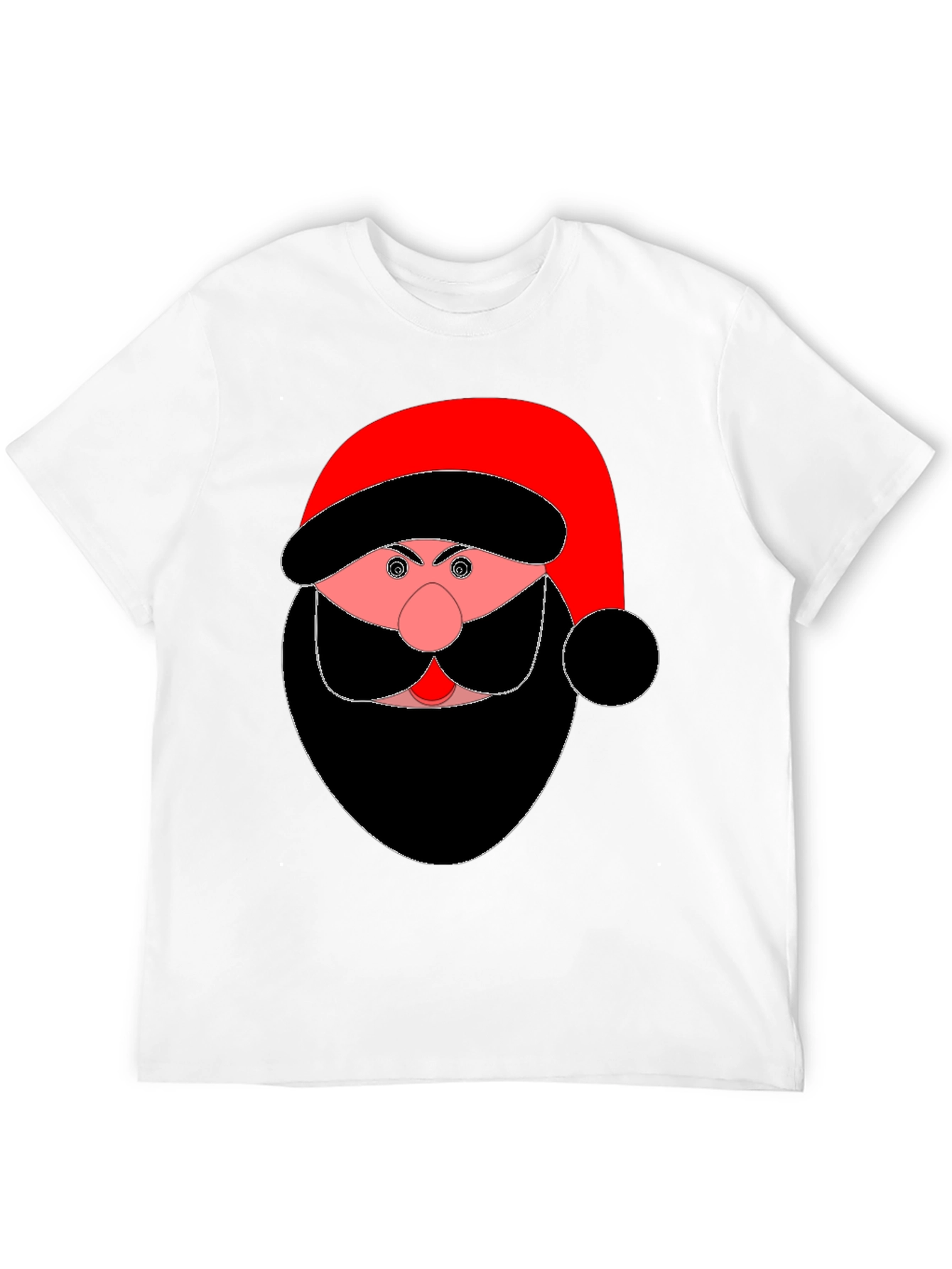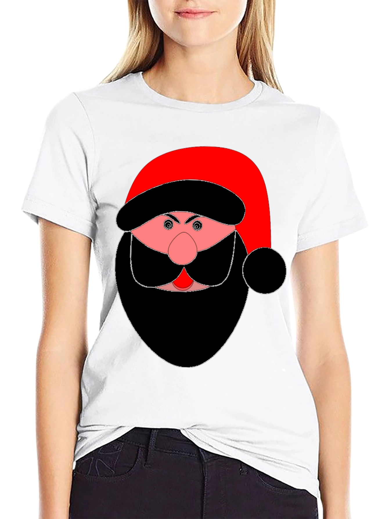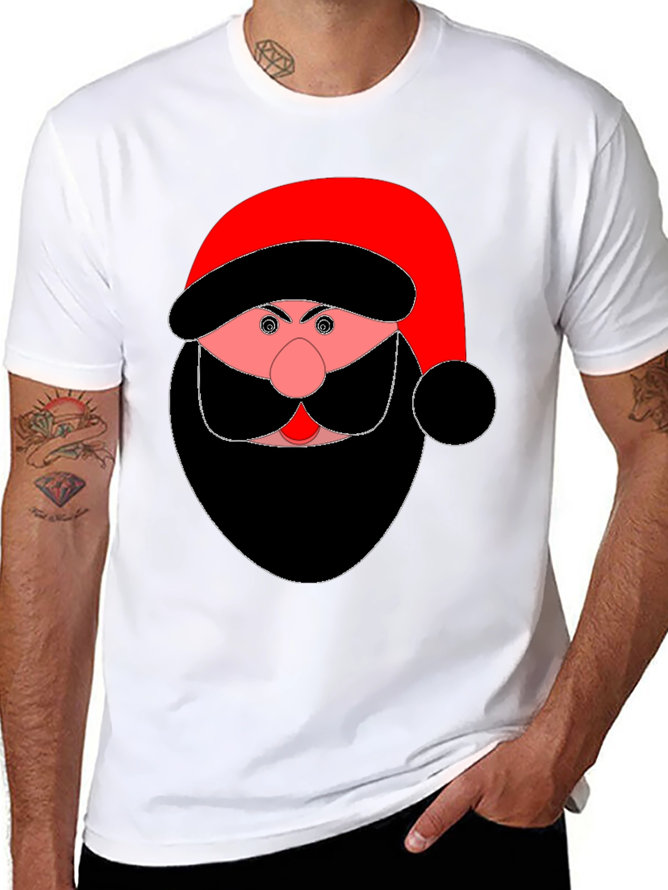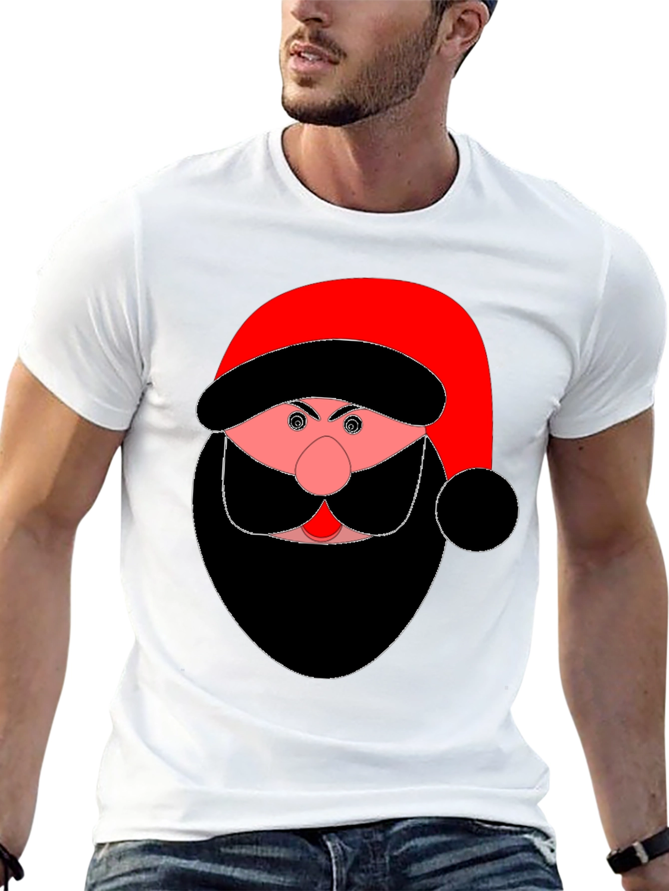 Get ready for the holidays with this eye-catching black t-shirt featuring a cartoon Santa Claus graphic. The design showcases Santa with a red hat, black beard, and a mischievous expression. Made from a soft, comfortable fabric, this tee is perfect for spreading Christmas cheer in a casual and fun way. Wear it to holiday parties, family gatherings, or while doing your Christmas shopping. This festive t-shirt is sure to be a conversation starter and a favorite piece in your holiday wardrobe. Grab yours now and get into the holiday spirit!