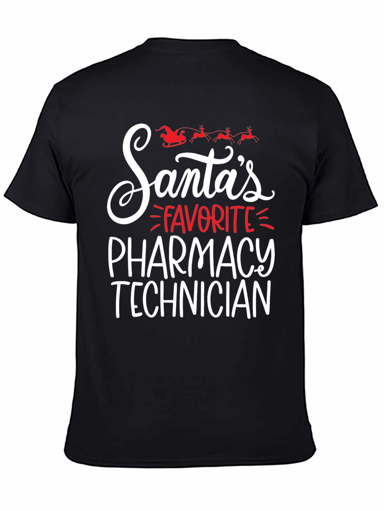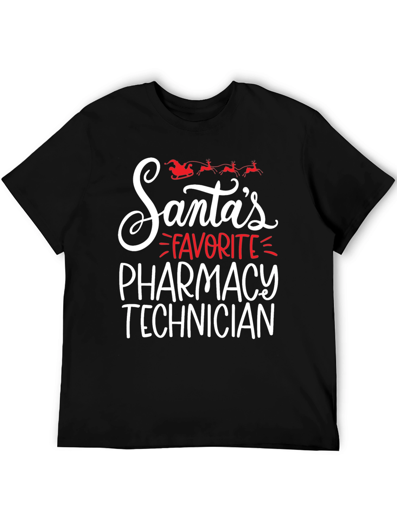 Celebrate the holidays with this festive t-shirt! This black tee features a fun and playful design that reads "Santa's Favorite Pharmacy Technician" in a stylish, eye-catching font. A red Santa sleigh graphic adds a touch of Christmas cheer. Made from a soft and comfortable material, this shirt is perfect for wearing during the holiday season, at work, or any casual occasion. Show off your holiday spirit and pharmacy pride with this unique and charming t-shirt. It makes a great gift for the pharmacy technician in your life!