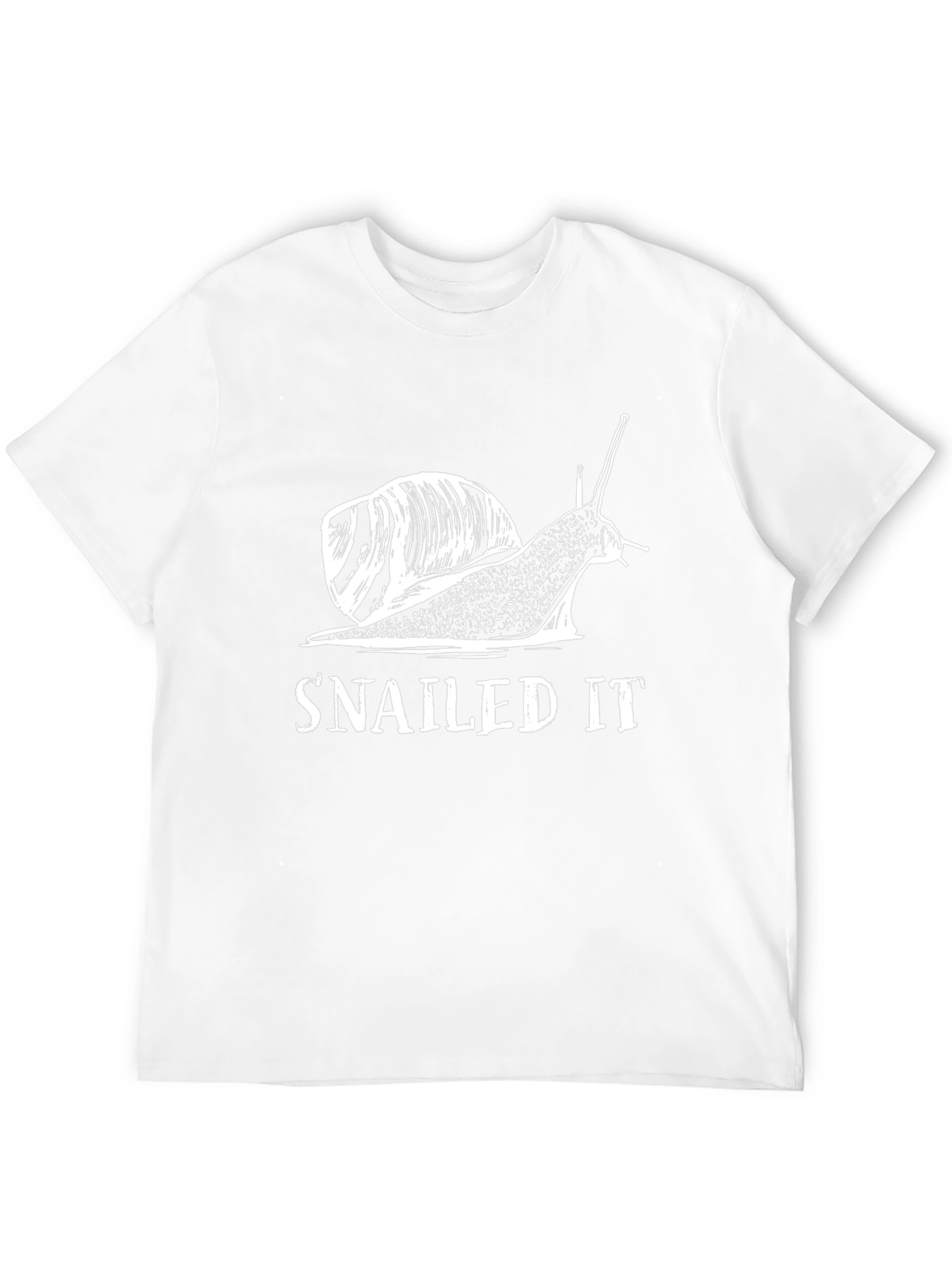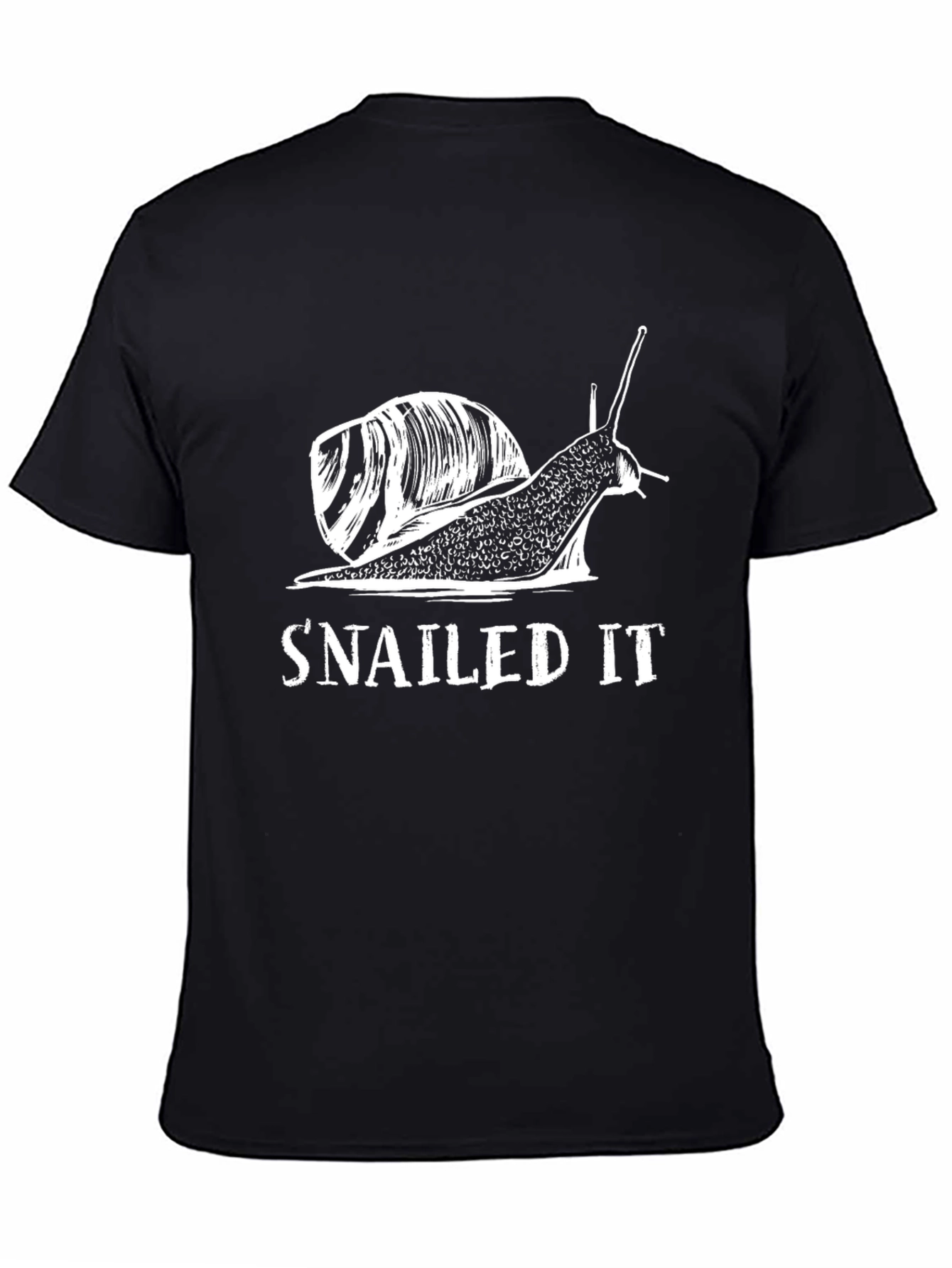 Show off your quirky side with this unique graphic tee! This black t-shirt features a bold, white illustrated snail design, playfully accompanied by the pun "SNAILED IT". Made from what appears to be a soft and comfortable cotton blend, this casual shirt is perfect for everyday wear. The humorous design makes it a great conversation starter and a fun addition to any wardrobe. Ideal for casual outings, lounging at home, or as a gift for the pun-lover in your life. Embrace your sense of humor with this eye-catching and comfortable tee!