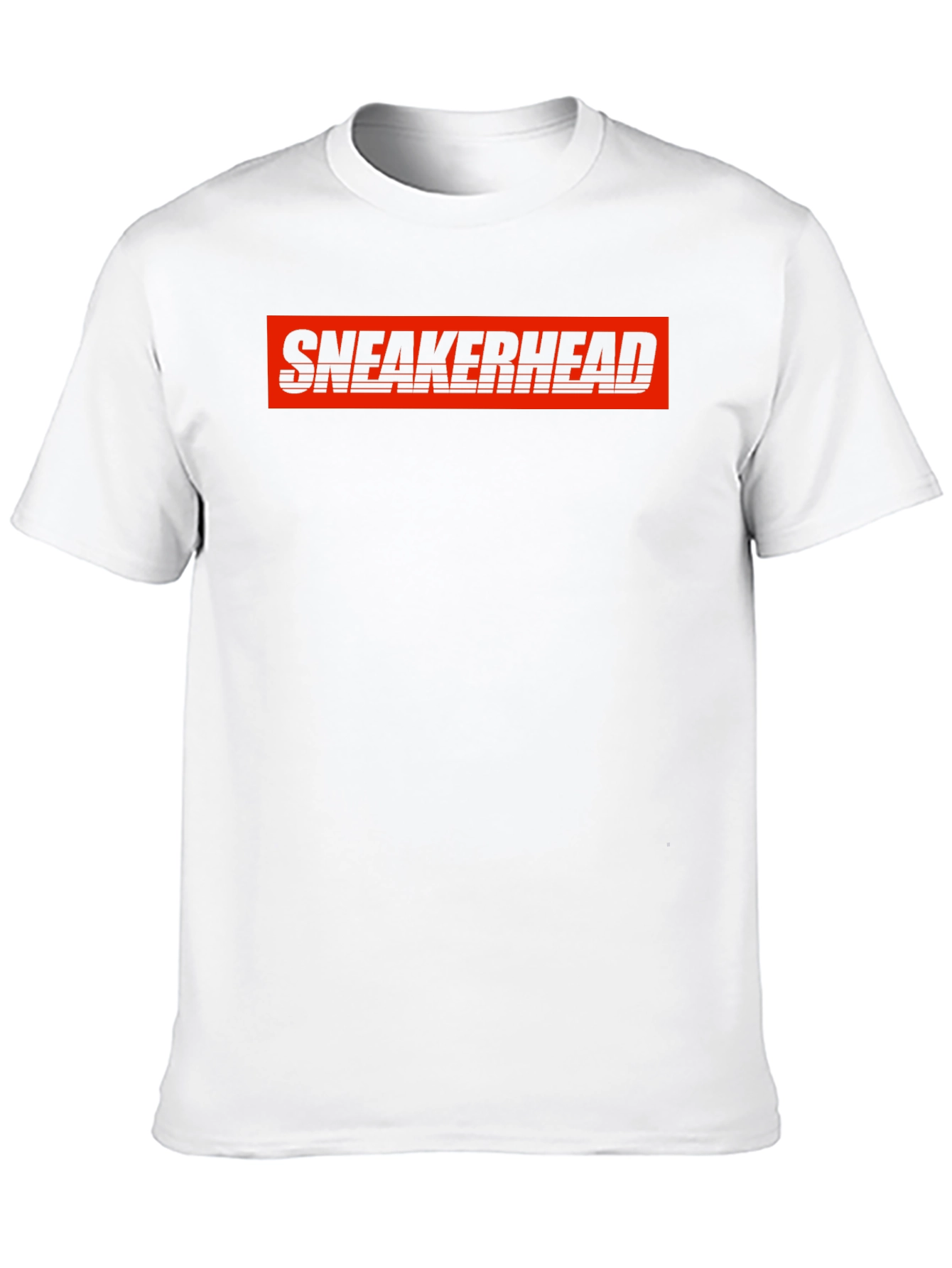 Show off your love for sneakers with this stylish black t-shirt. The tee features a bold, rectangular graphic on the chest with the word "SNEAKERHEAD" in a striking red font. Crafted from a comfortable-looking fabric, this tee is ideal for everyday wear, whether you're hitting the streets, hanging out with friends, or simply relaxing at home. The classic black color makes it versatile enough to pair with jeans, shorts, or joggers. Make a statement and let everyone know about your passion for sneakers with this must-have tee.