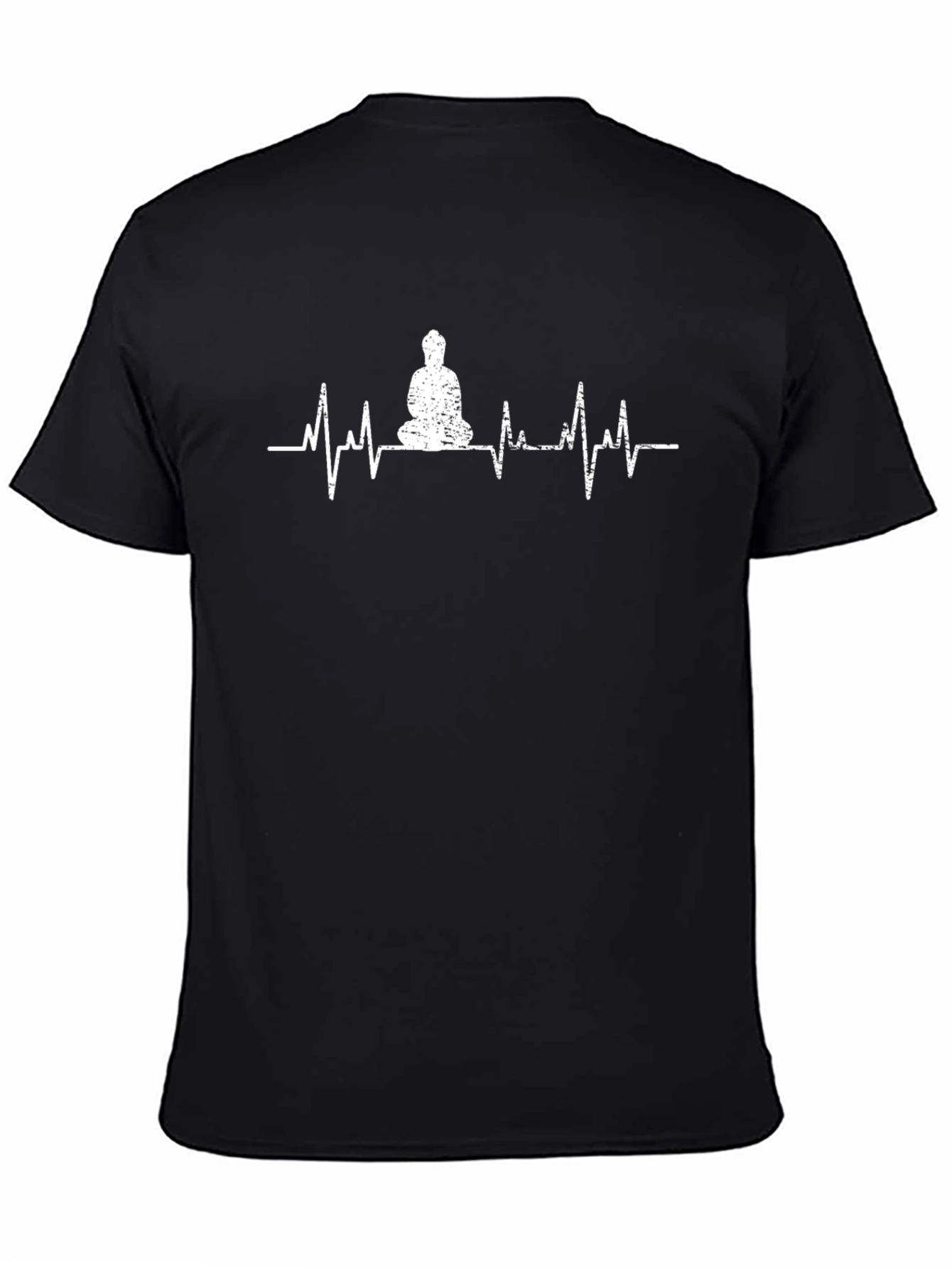 Zen Heartbeat T-Shirt - Meditating Buddha ECG Line Tee